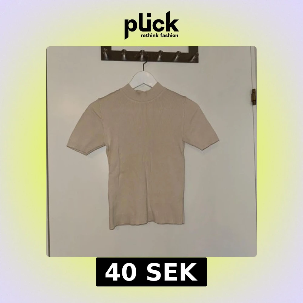 Säljer en stilren beige polotröja med korta ärmar. Tröjan är ribbad vid ärmslut och nederkant vilket ger en snygg passform. Perfekt för en minimalistisk look.