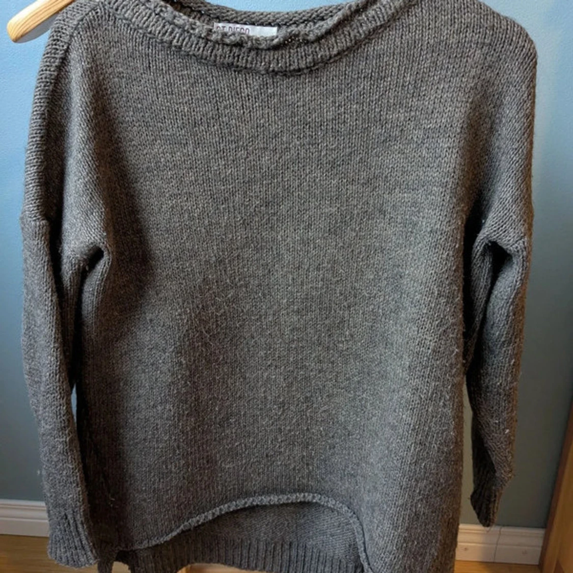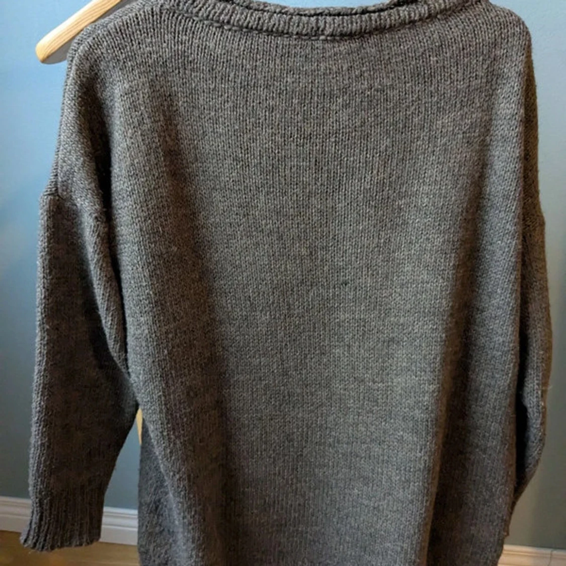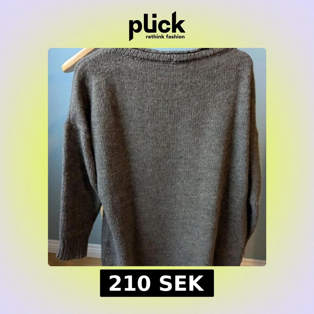 Mysig grå stickad tröja med rund halsringning och långa ärmar. Tröjan är enkel och stilren, perfekt att slänga på sig när det är kyligt ute. Materialet består av 70% akryl och 30% ull för en skön känsla.