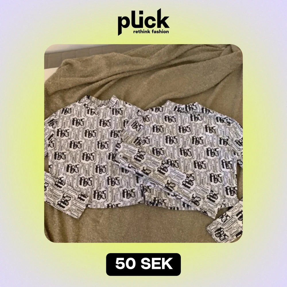 Två vita långärmade tröjor från FB Sister med ett svart mönster. Tröjan har en hög krage och är lite magkort. Går att köpa ihop och separat. 1 för 50, 2 för 90kr