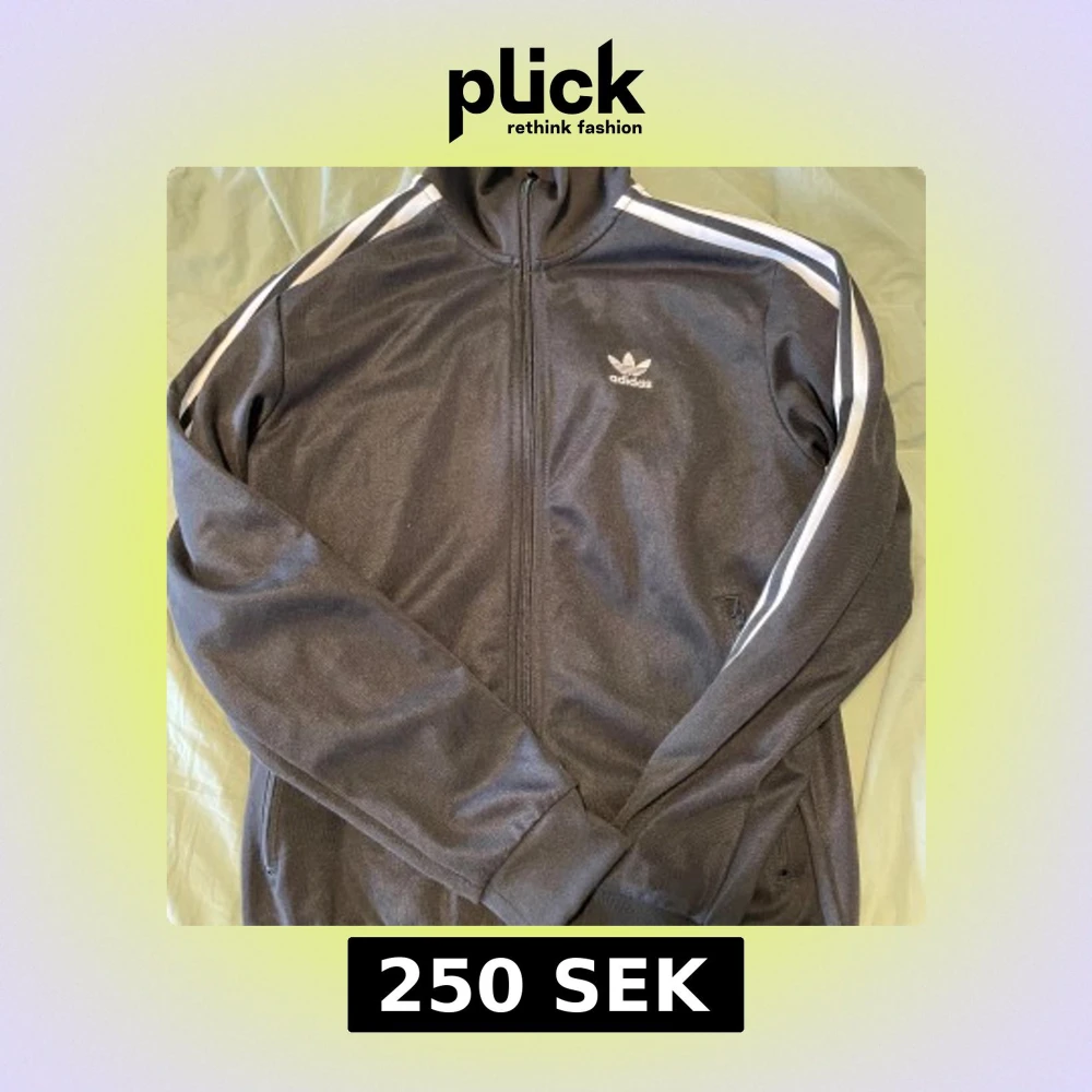Snygg svart träningsjacka från Adidas med klassiska vita ränder längs ärmarna. Jackan har dragkedja framtill och Adidas-logga på bröstet. Perfekt för sportiga aktiviteter eller en avslappnad stil.