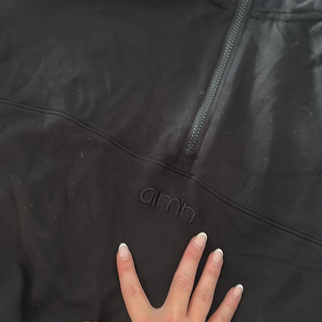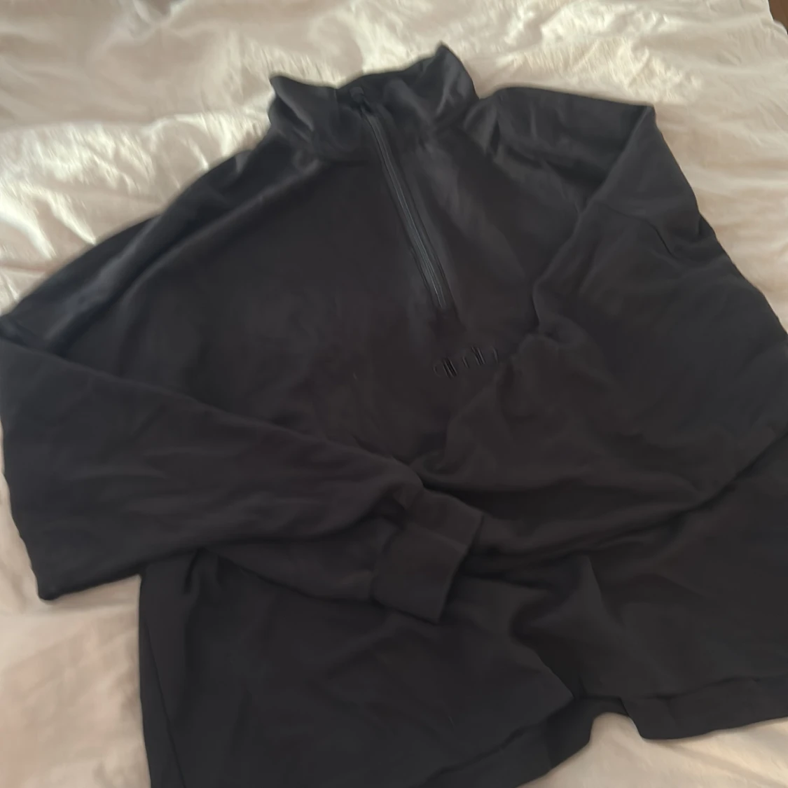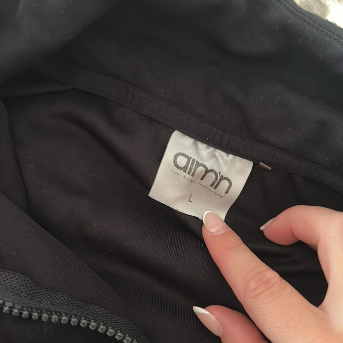 Svart fleece-tröja från Aim'n i storlek L. Tröjan har en hög krage och half zip-dragkedja framtill. Broderad Aim'n-logga på bröstet och långa ärmar. Perfekt för kyliga dagar och riktigt skön att mysa i.