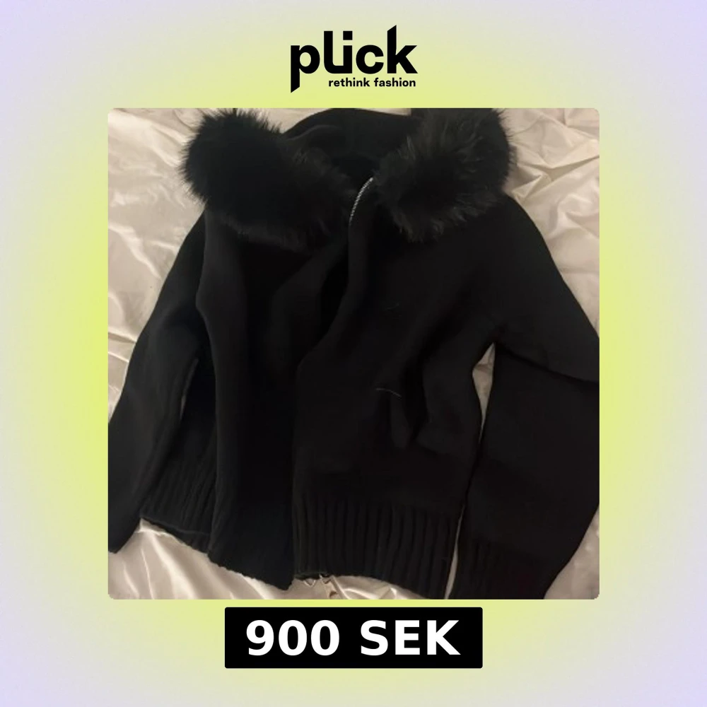 Alessa jacka - Säljer en svart cardigan jacka med fluffig pälsluva. Jackan har dragkedja framtill och är croppad i modellen. Perfekt för dig som vill ha en mysig och snygg look med extra attityd. By condition
