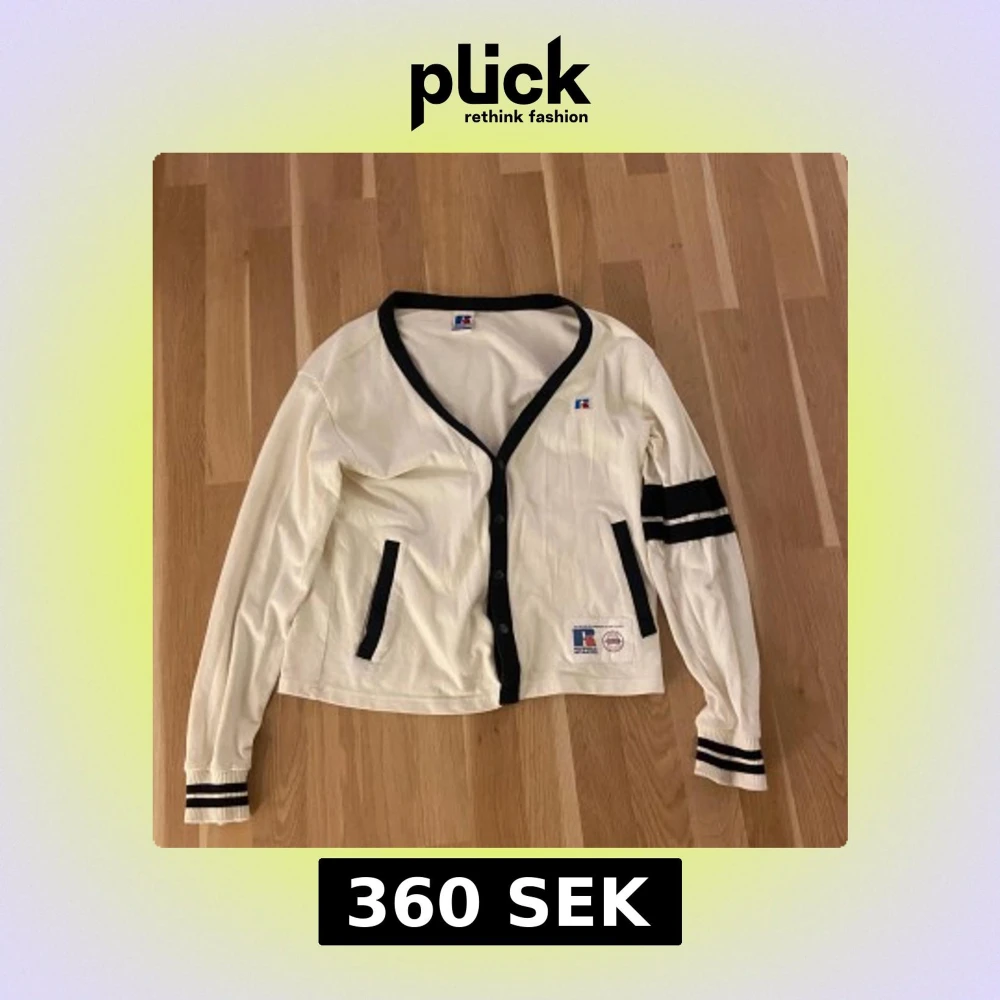 Snygg vit kofta från Russell Athletic med svarta detaljer och knappar framtill. V-ringad med svarta ränder på ena ärmen och muddar. Två fickor och patch med logga nedtill. Perfekt för dig som gillar sportig och retro stil.