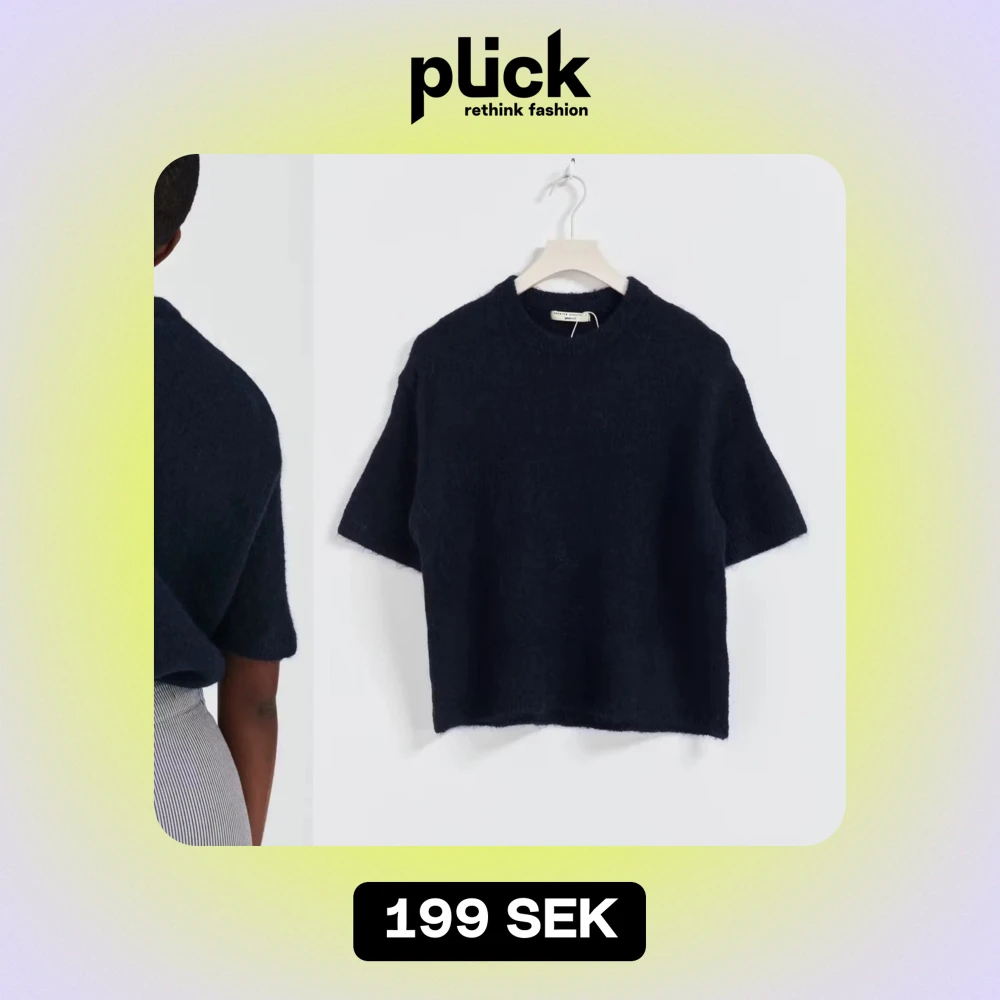 Snygg mörkblå stickad tröja från Gina med korta ärmar❤️