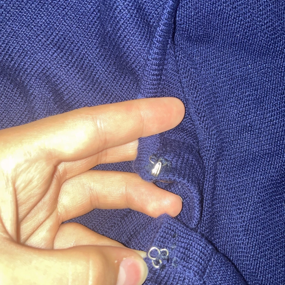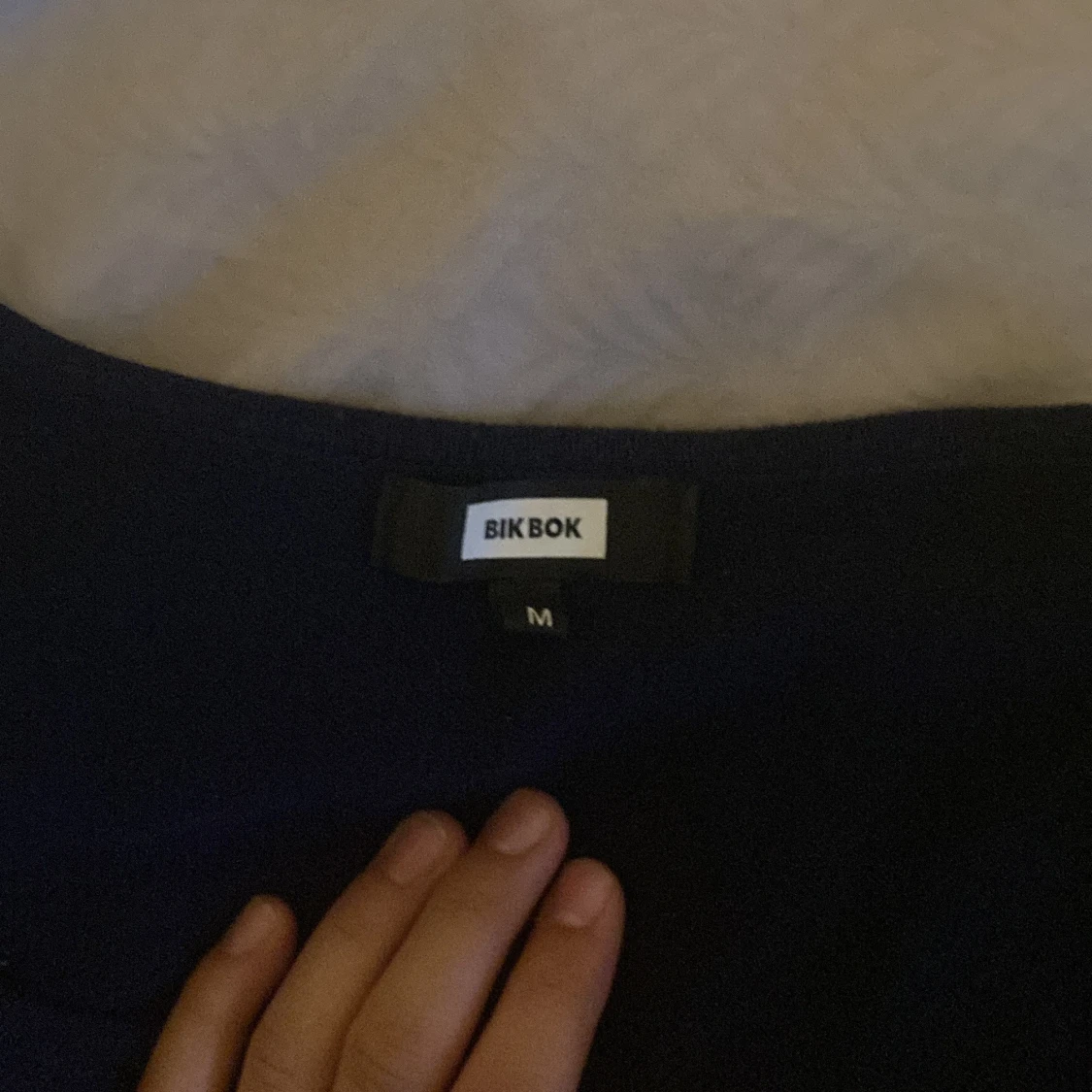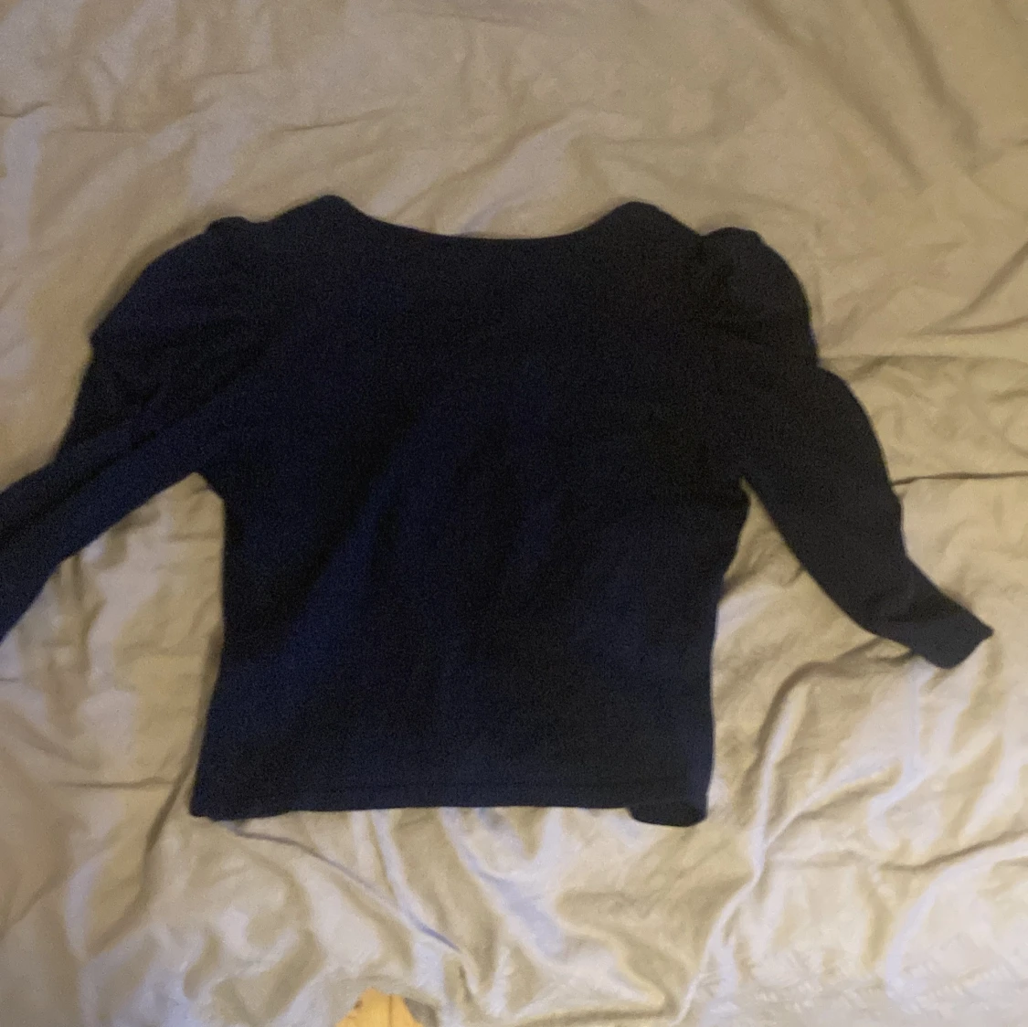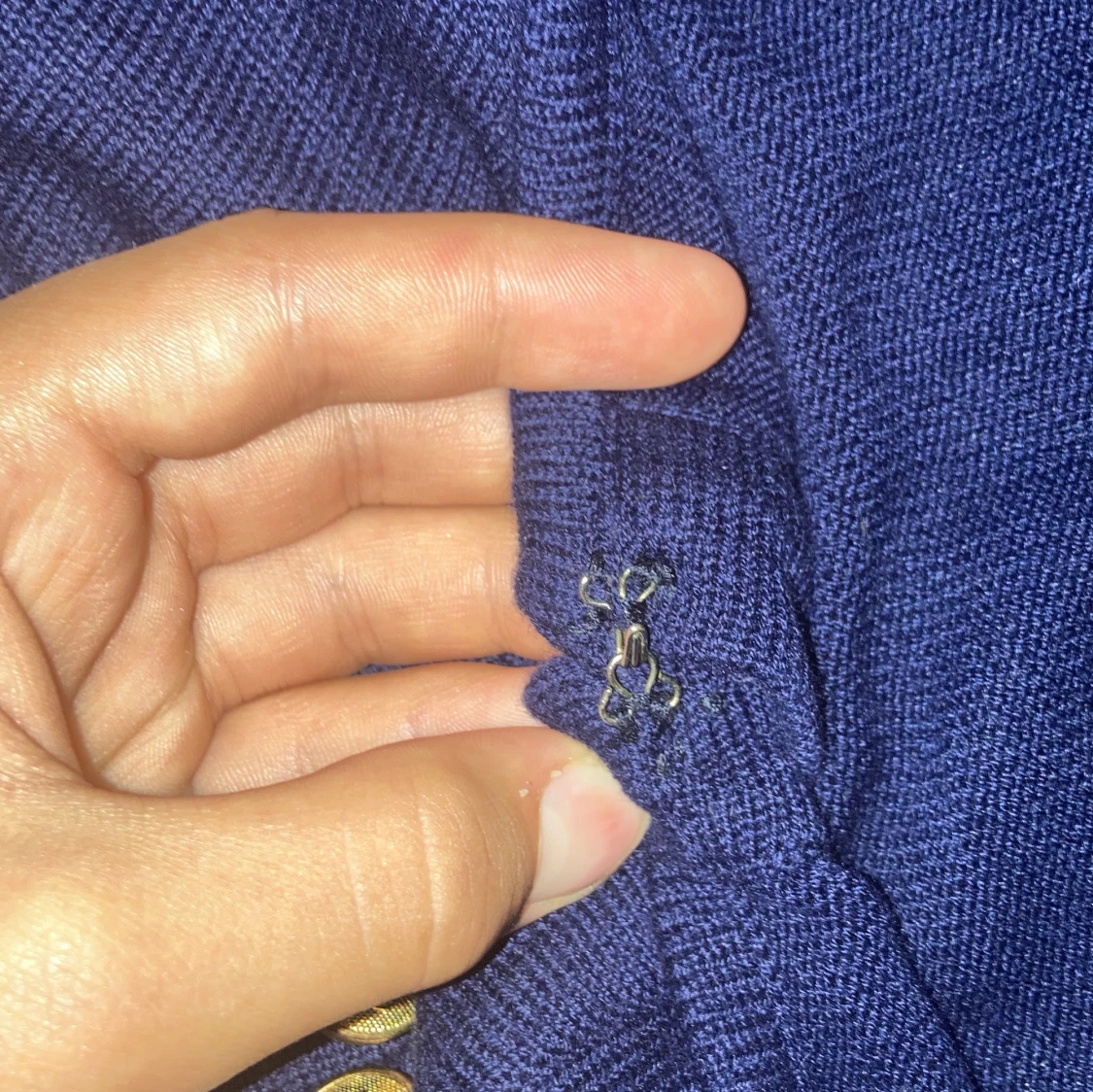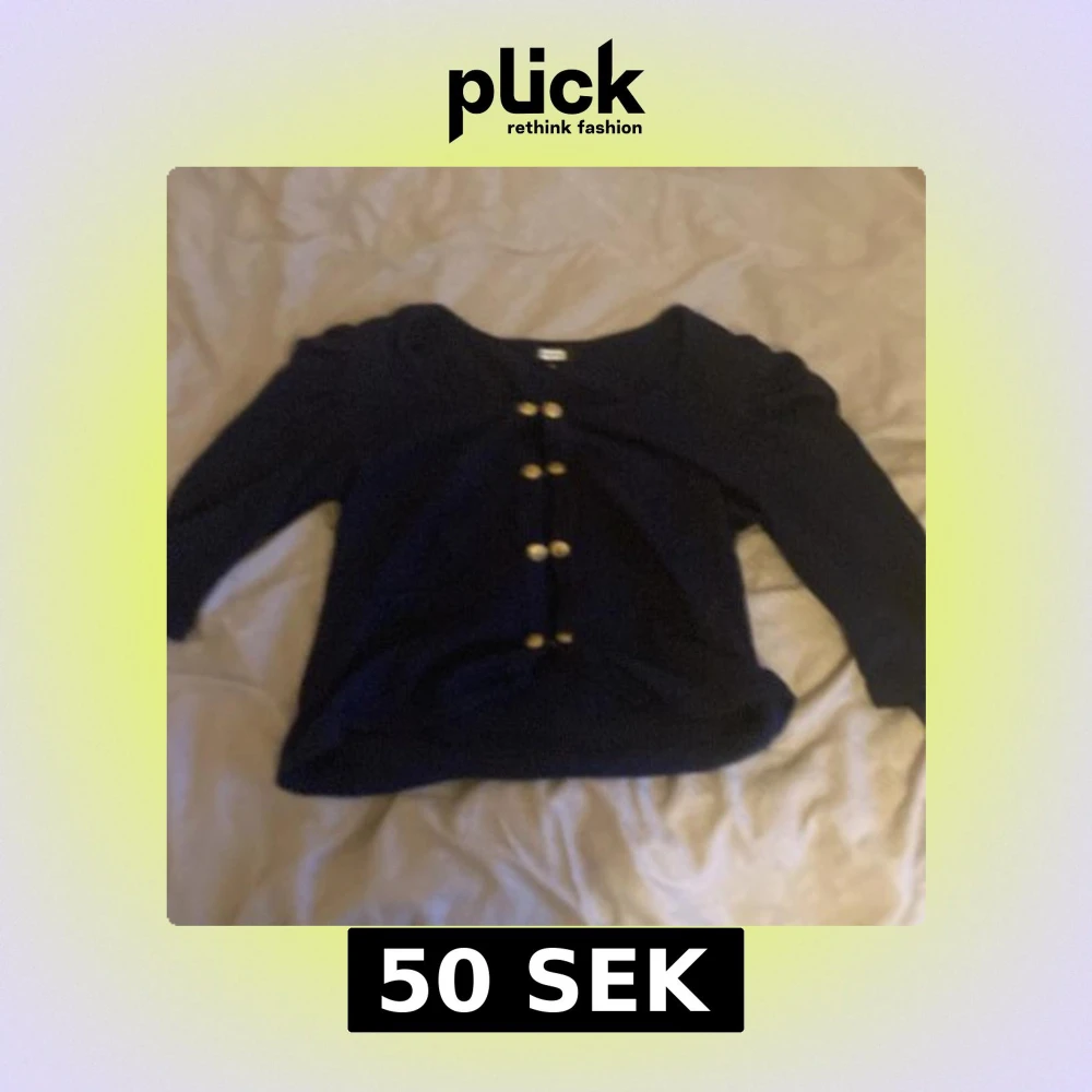 Mörkblå kofta från Bik Bok i stickat material med snygga guldiga knappar framtill. Modellen har trekvartsärm och lätt puff vid axlarna för en trendig look. Perfekt att slänga över en topp när det blir kyligt. Säljes i storlek M.