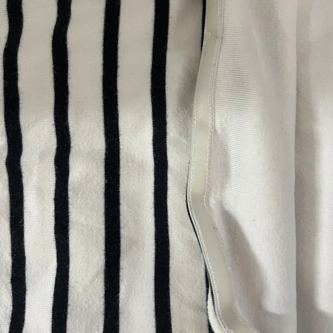 Säljer en vit och svart randig offshoulder topp från BikBok i storlek S. Toppens material är mjuk bomull och den har en slim passform som sitter snyggt. Perfekt för dig som gillar klassisk stil med en modern twist.