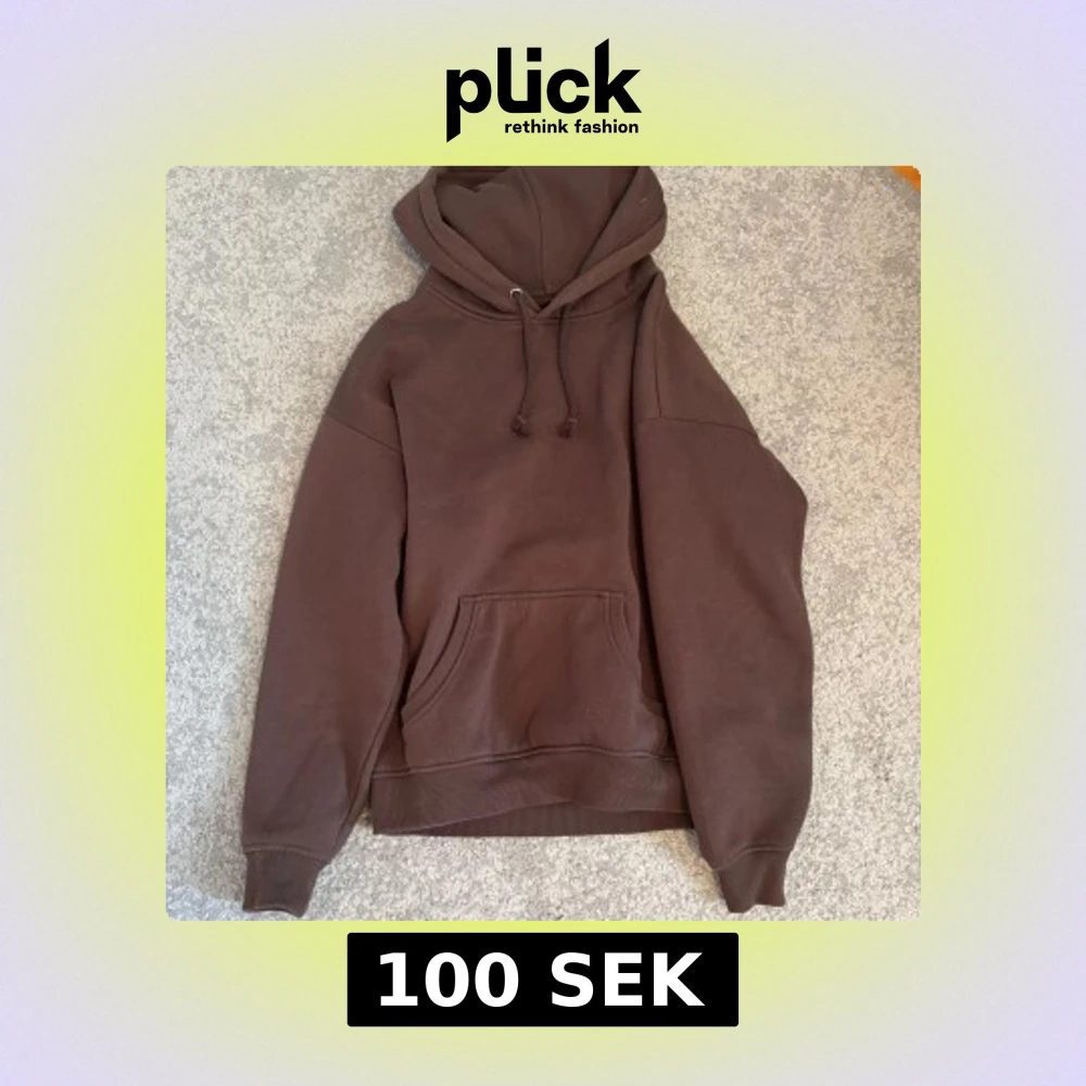 Säljer en brun hoodie med en klassisk design. Den har en stor ficka framtill och justerbar huva med dragsko. Perfekt för en avslappnad stil.