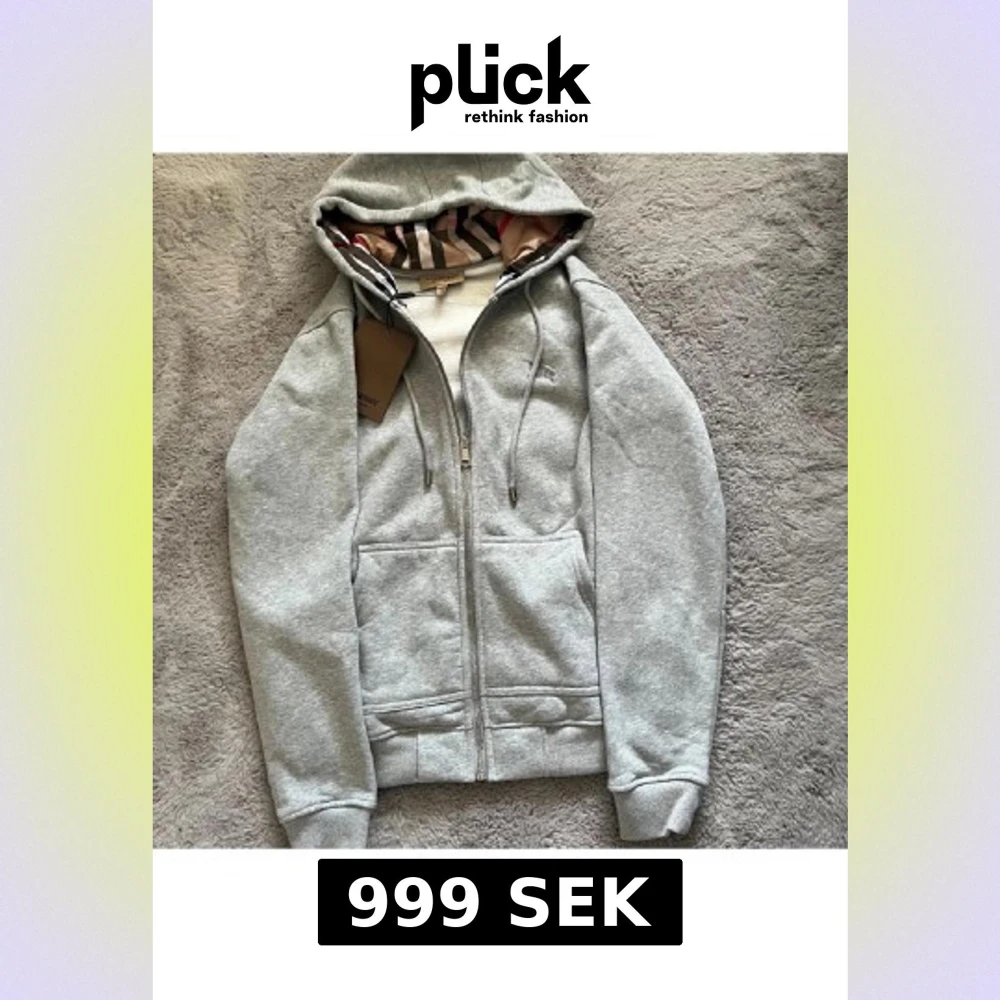 Grå Burberry hoodie med dragkedja