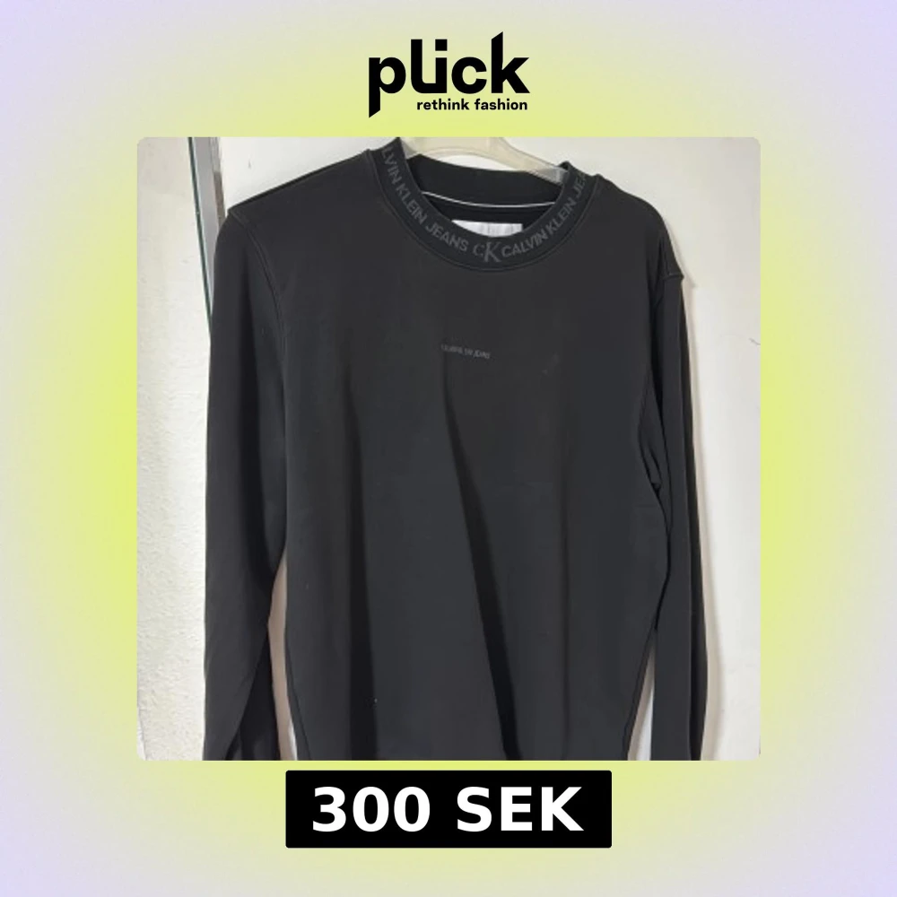 Svart långärmad sweatshirt från Calvin Klein Jeans med logotyp tryckt på bröstet och runt halsringningen. Tröjan har en klassisk rund hals och är gjord i mjuk bomull, perfekt för en chill och stilren look. Passformen är normal pch storlek M