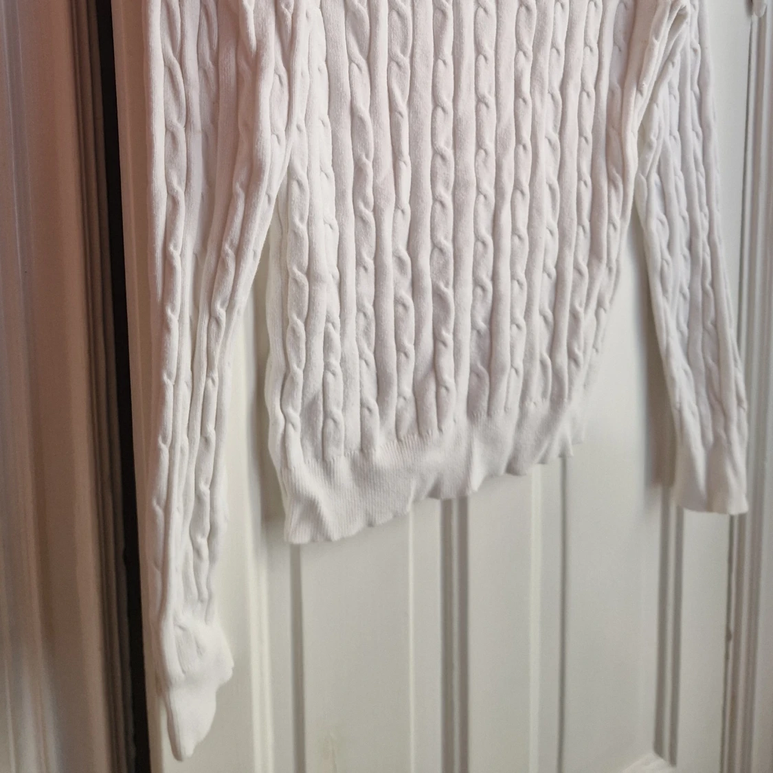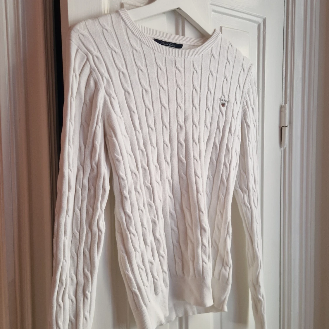 Klassisk vit kabelstickad tröja från Gant i stretchig bomull. Klassisk rund halsringning, diskret Gant-logo på bröstet och ribbade muddar. Perfekt för dig som gillar en clean och tidlös stil med snygga detaljer.