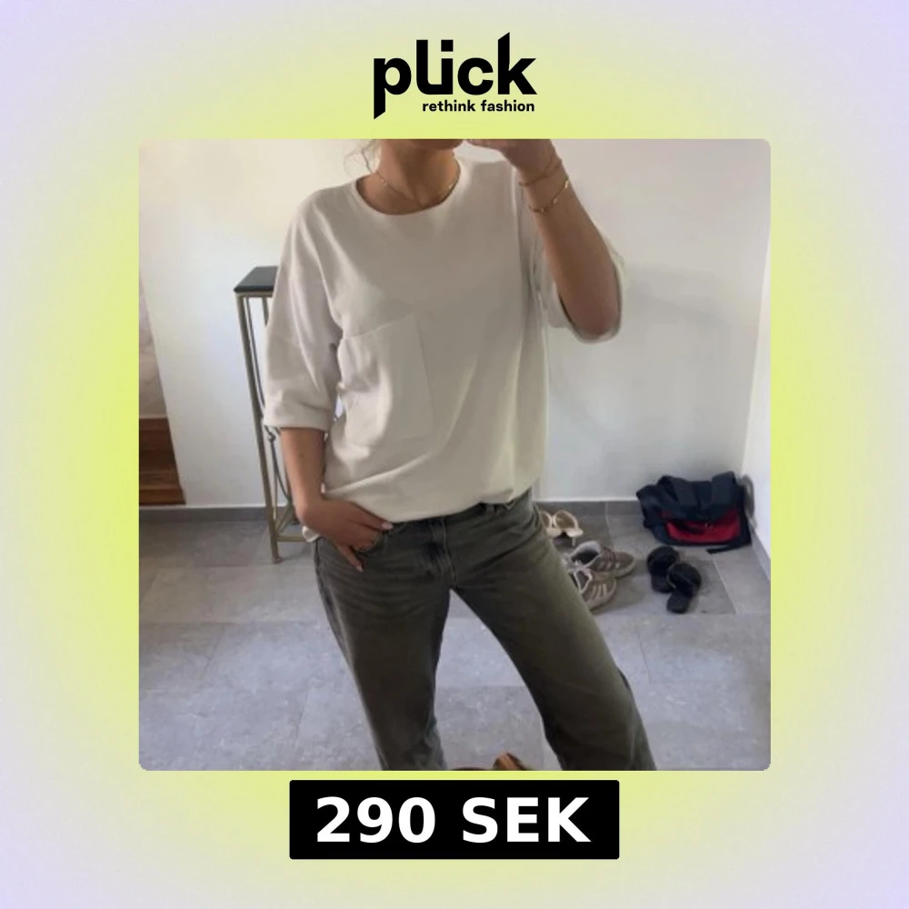 Säljer en stilren vit topp från COS med rund halsringning och en stor bröstficka. Tröjan har halv-långa ärmar och är gjord i ett mjukt bomullsmaterial. Perfekt för en clean och enkel look.