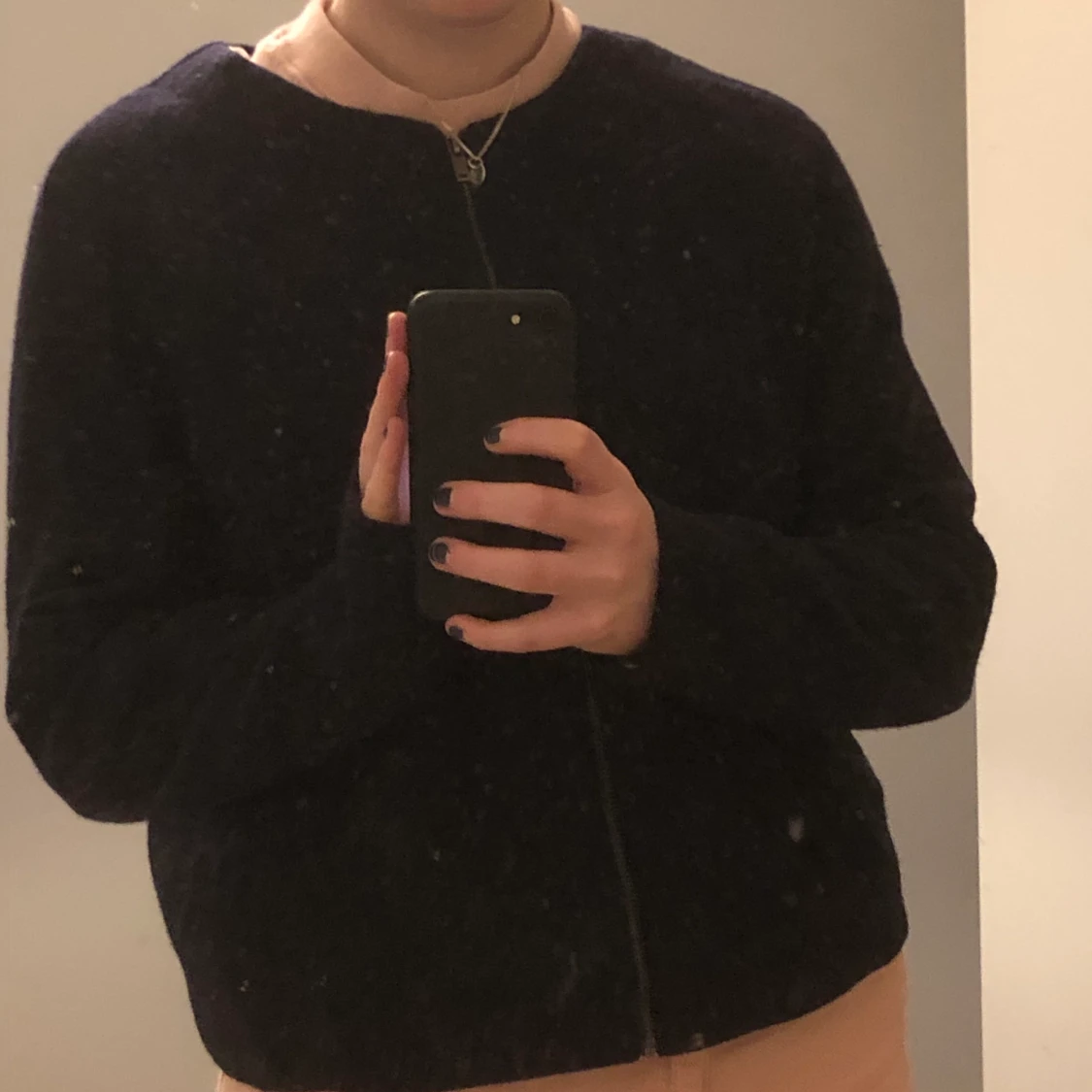 Säljer denna varma mörkblåa ulltröja från COS. Ullet har dragit ihop sig lite, men fungerar fin fint ändå 💕