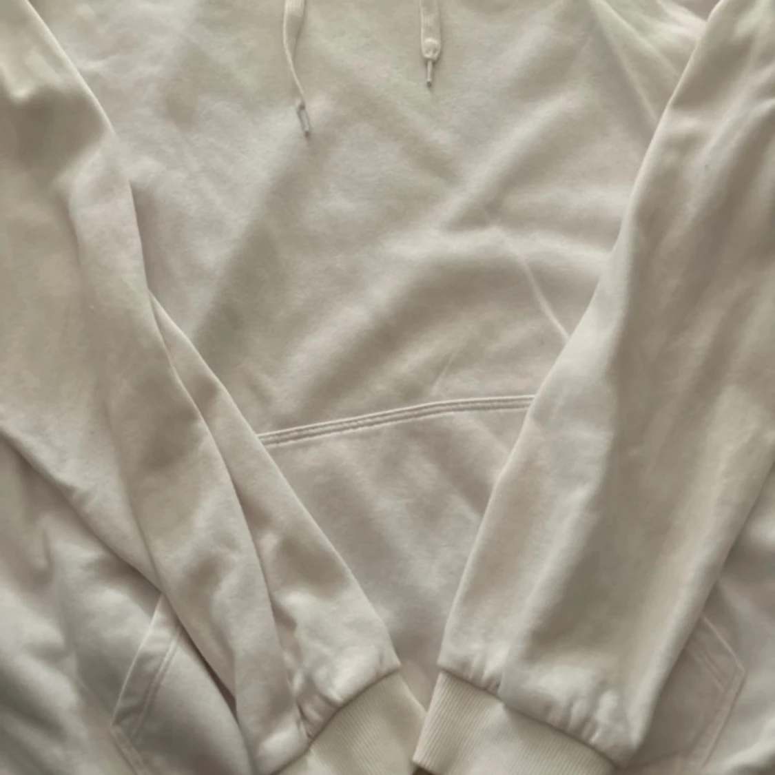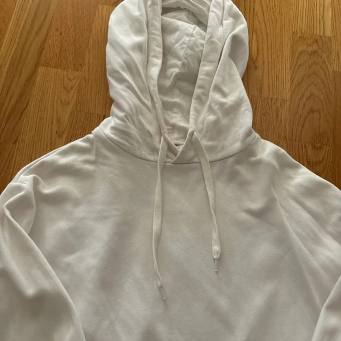 Vit hoodie från Cubus med huva och snörning, samt magficka framtill.