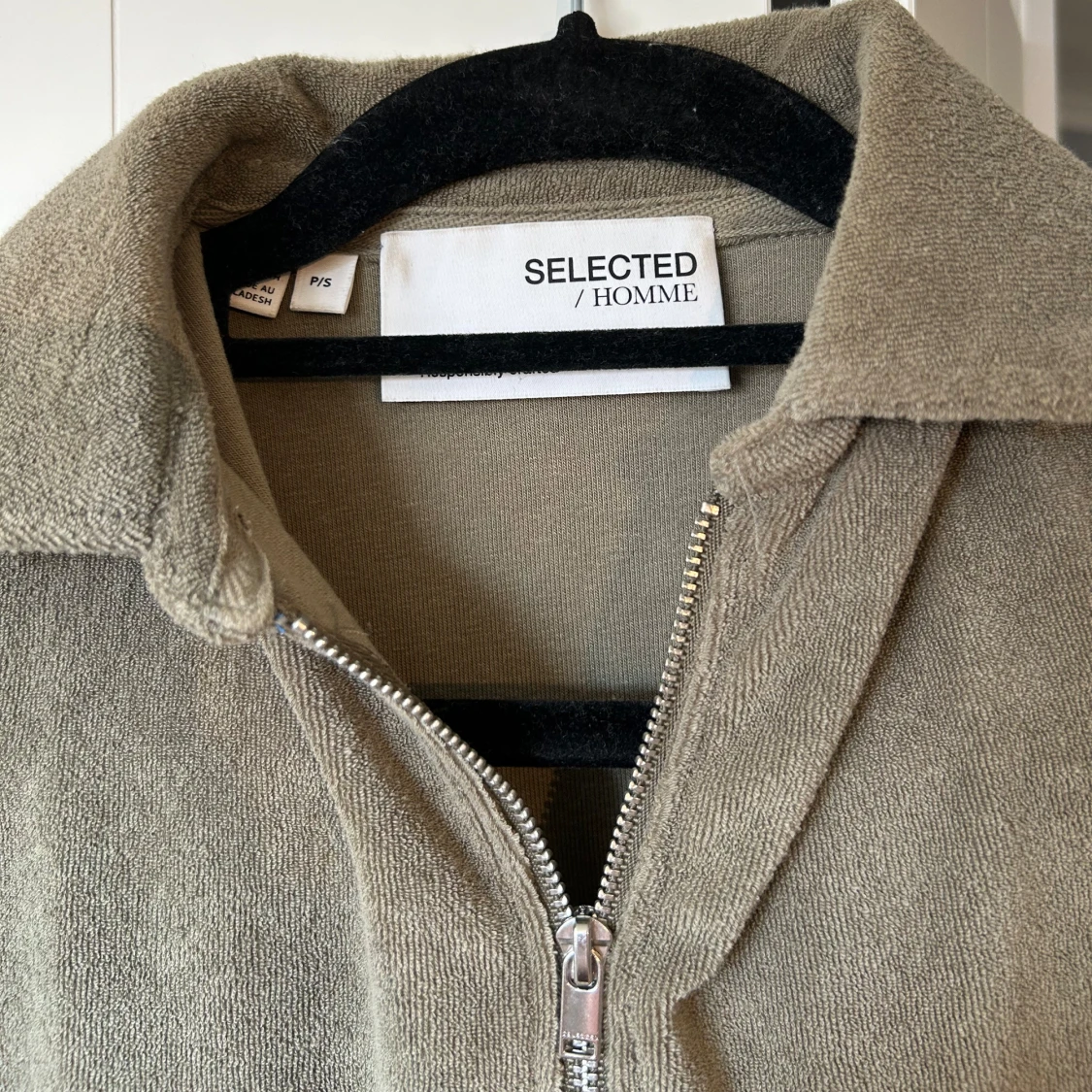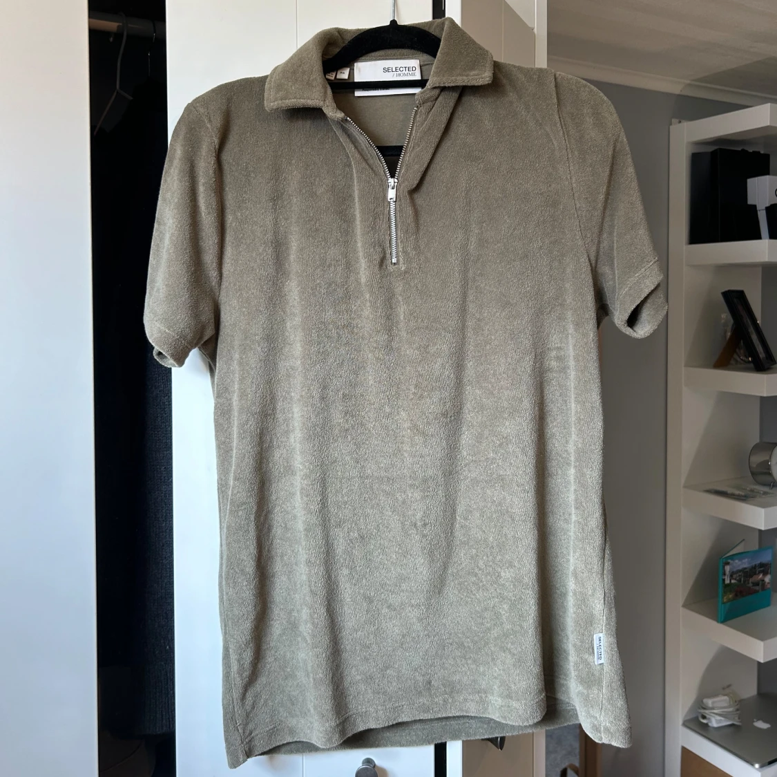 Säljer en snygg grön pikétröja från Selected Homme. Tröjan har en dragkedja framtill och korta ärmar. Materialet känns mjukt och bekvämt. Använd 1 eller 2 gånger. Pris går att diskuteras.