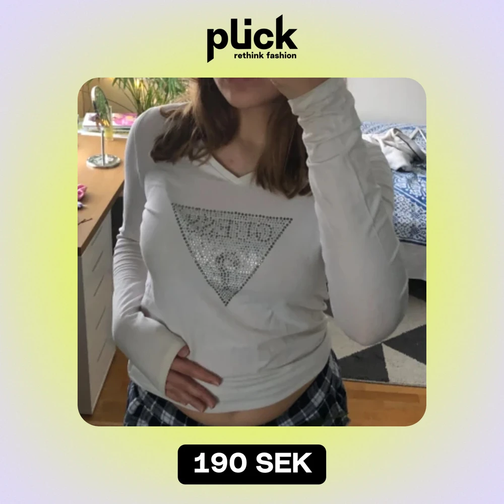 Långärmad tröja från Guess jag tror är äkta 💫 Lite strass har åkt av men inte mycket. Den är i använt men bra skick. Det är ett litet hål vid handleden, kan skicka bild vid förfrågan 😇