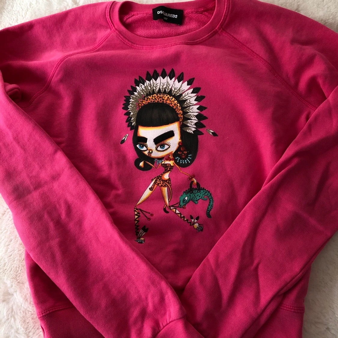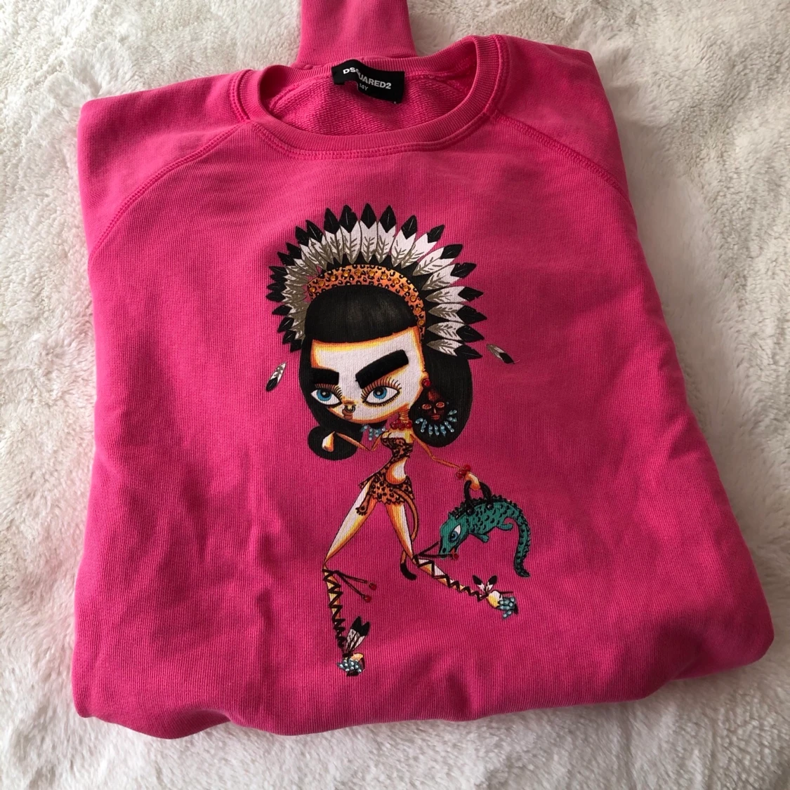 En asball rosa tjocktröja från Dsquared (äkta). Fick den när jag var yngre men den blev nästan aldrig använd så den är som ny! Exklusiv märkeströja, där av dyr! Nypris: ungefär 2000kr!! Säljer för 550kr Storlek: 14 år, funkar absolut för barn mellan 10-14