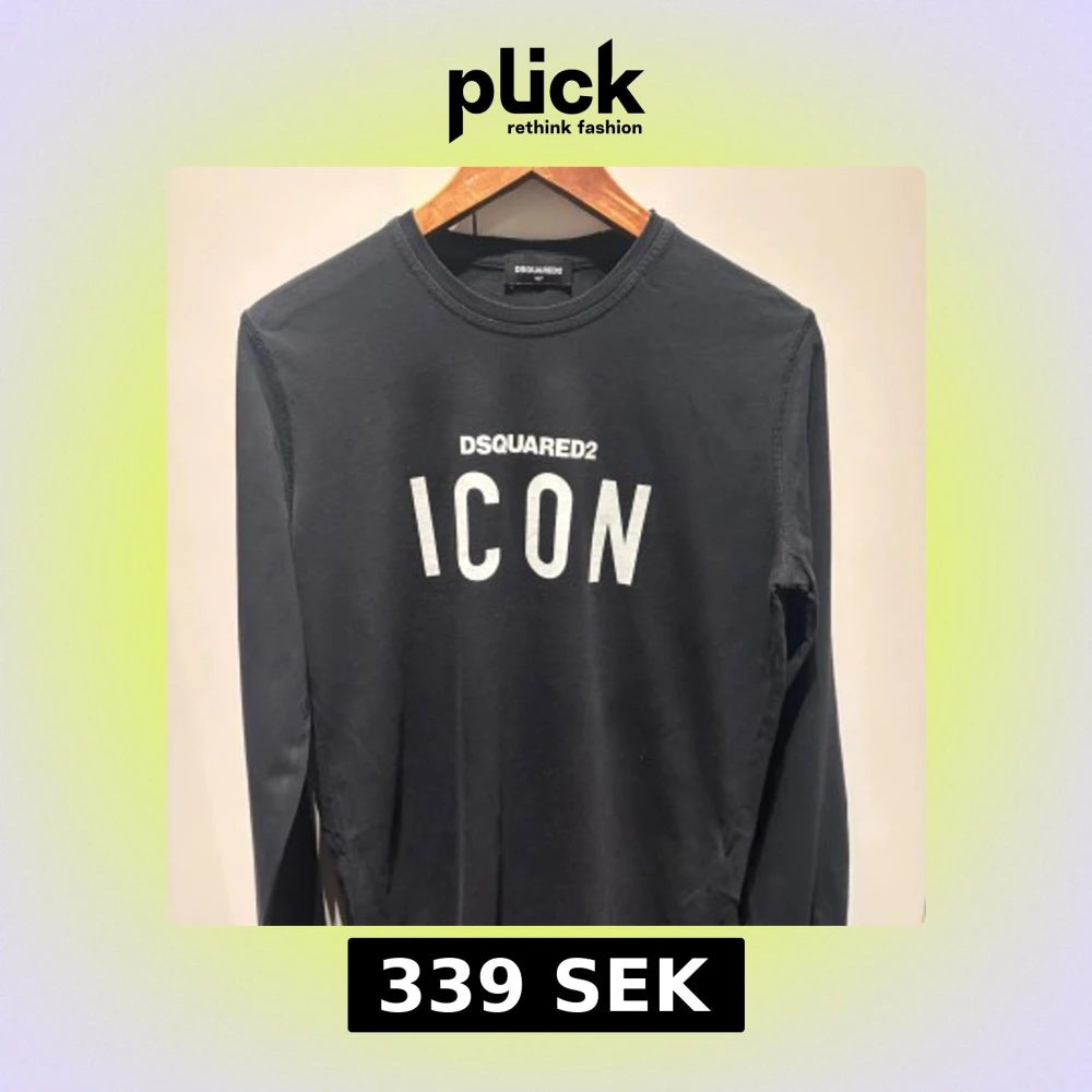 Svart långärmad tröja från DSQUARED2 med vit 'ICON'-text på bröstet. Klassisk rund halsringning och stilren design, perfekt för dig som gillar streetwear och vill sticka ut med en ikonisk look. Tillverkad i mjuk bomull för skön känsla hela dagen.