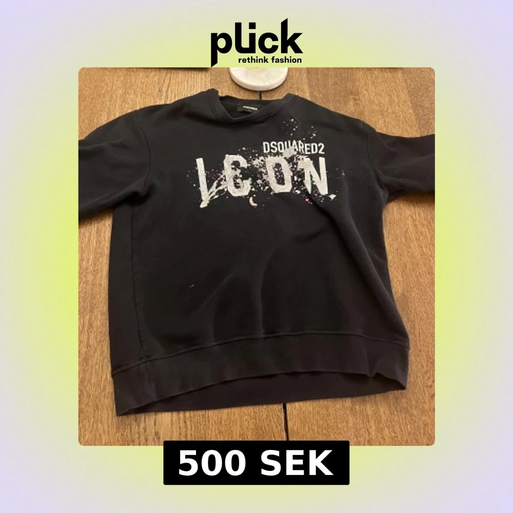 Svart sweatshirt från Dsquared2 i storlek L med stort vitt 'ICON'-tryck och färgstänk på bröstet. Tröjan har rund halsringning och är tillverkad i mjuk bomull. Perfekt för dig som vill sticka ut med en cool streetstyle-look.