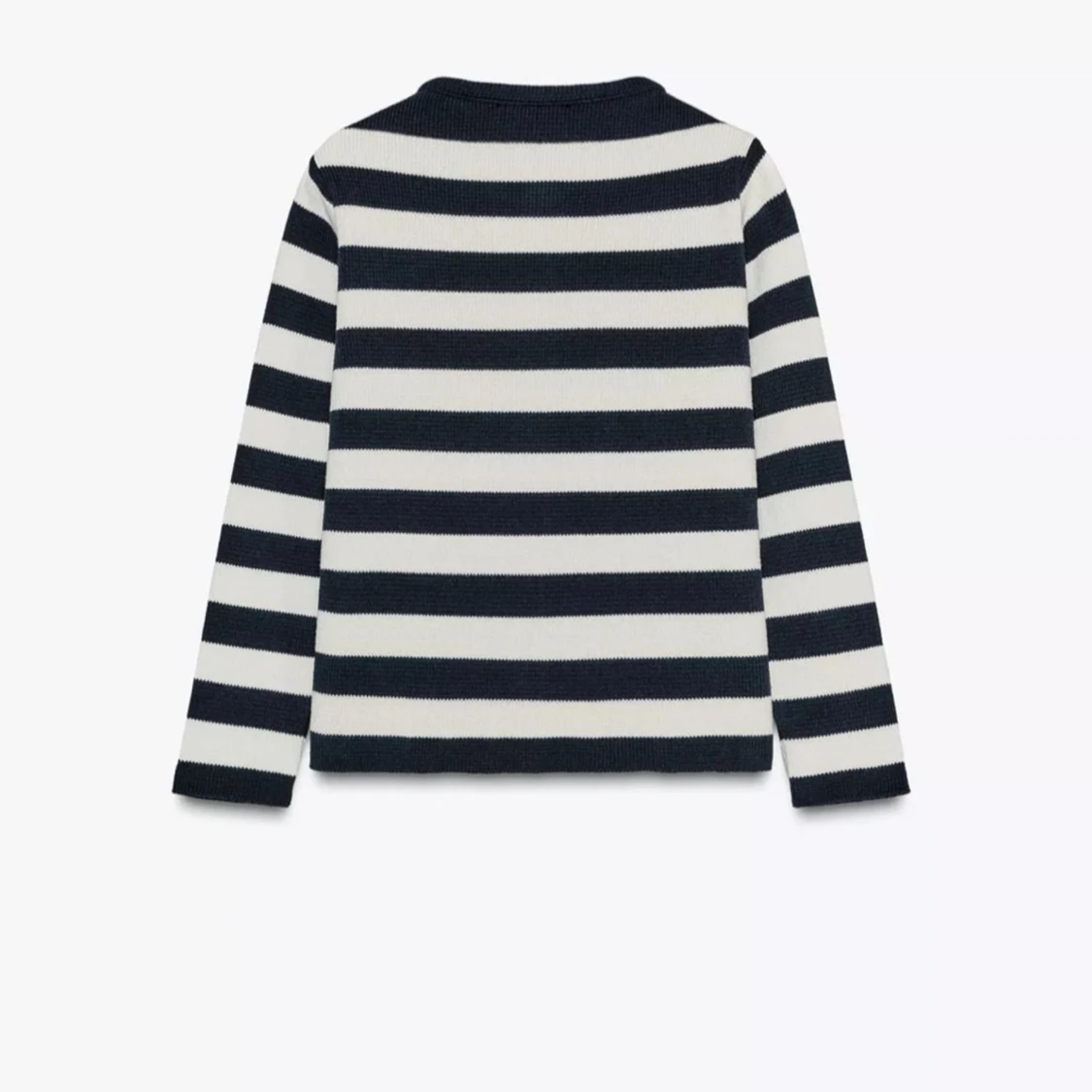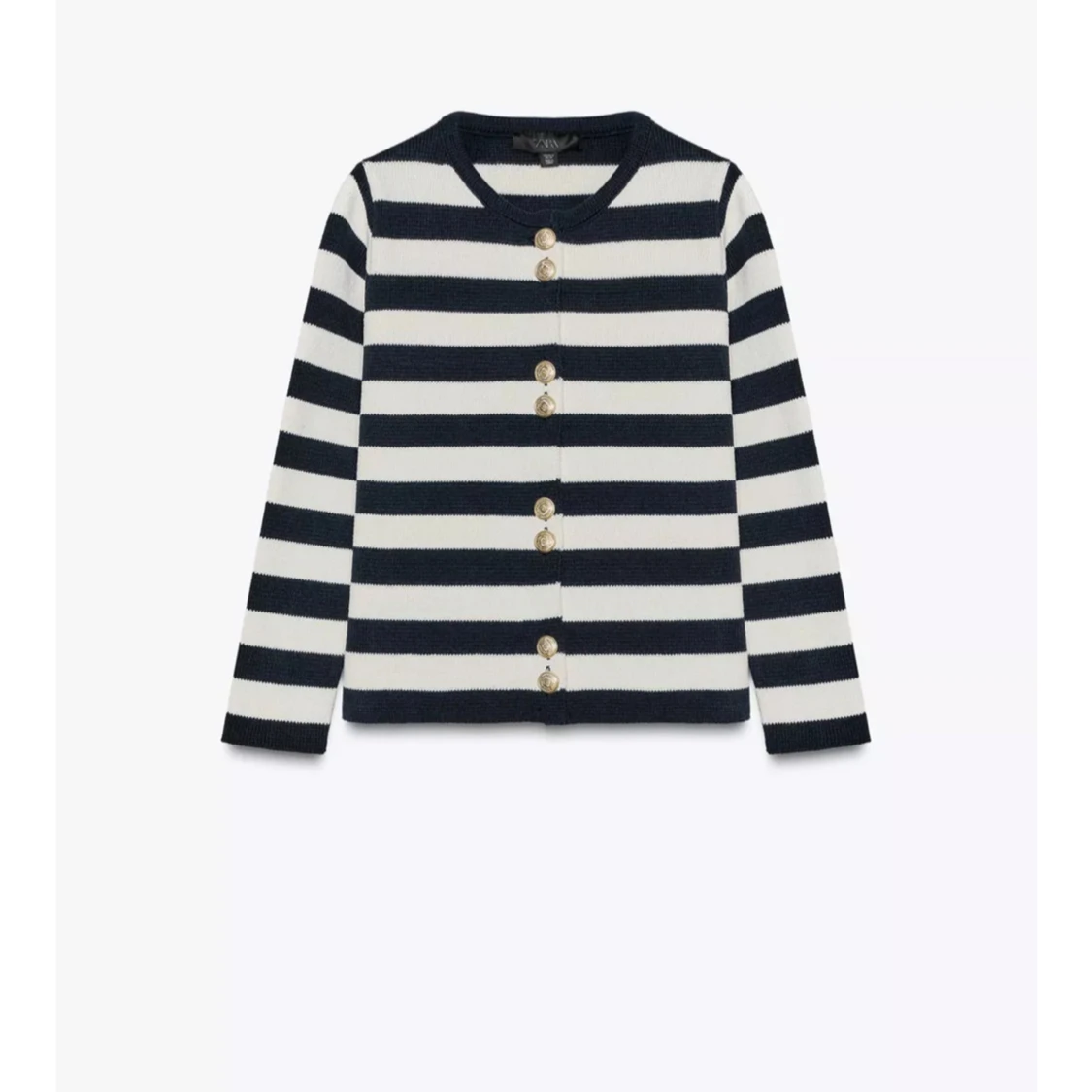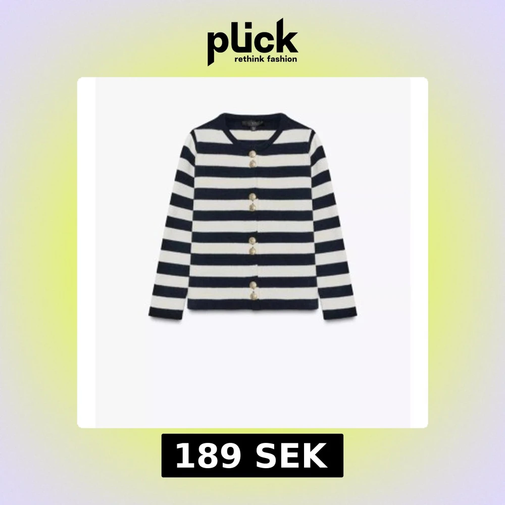 INTRESSEKOLL!! Snygg kofta med marinblå och vita ränder. Tröjan har guldiga knappar framtill. Knappt använd 💕