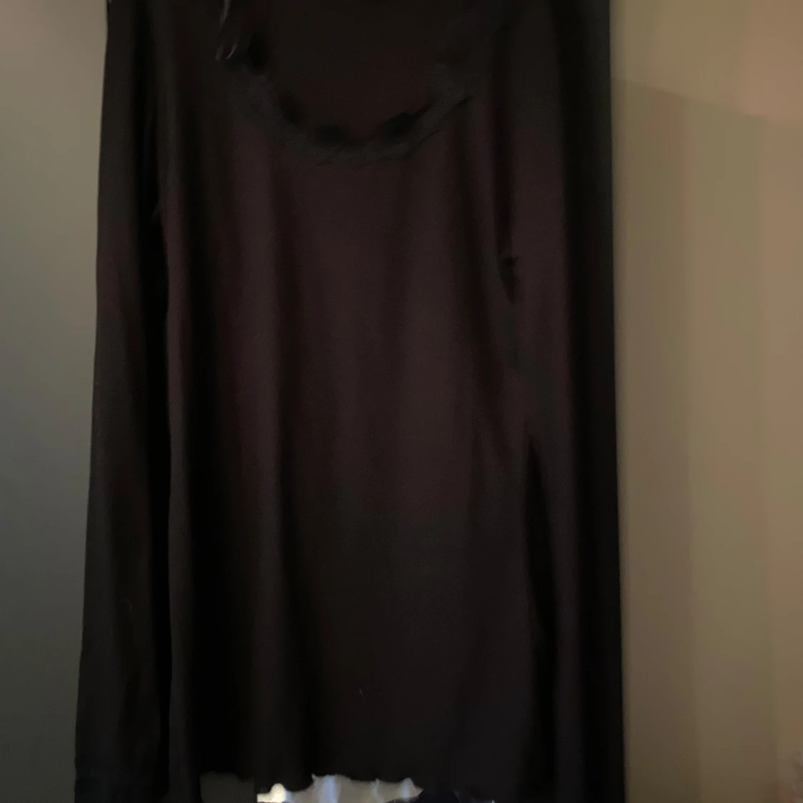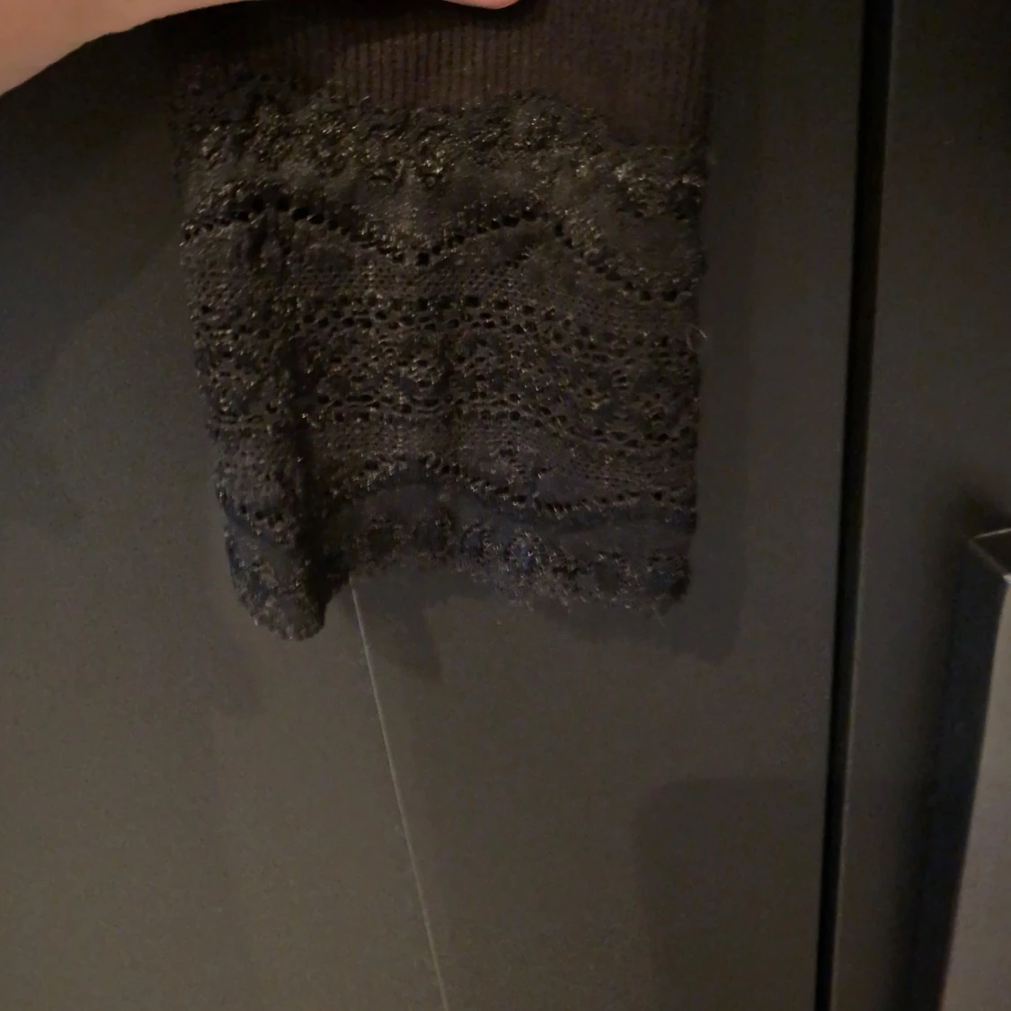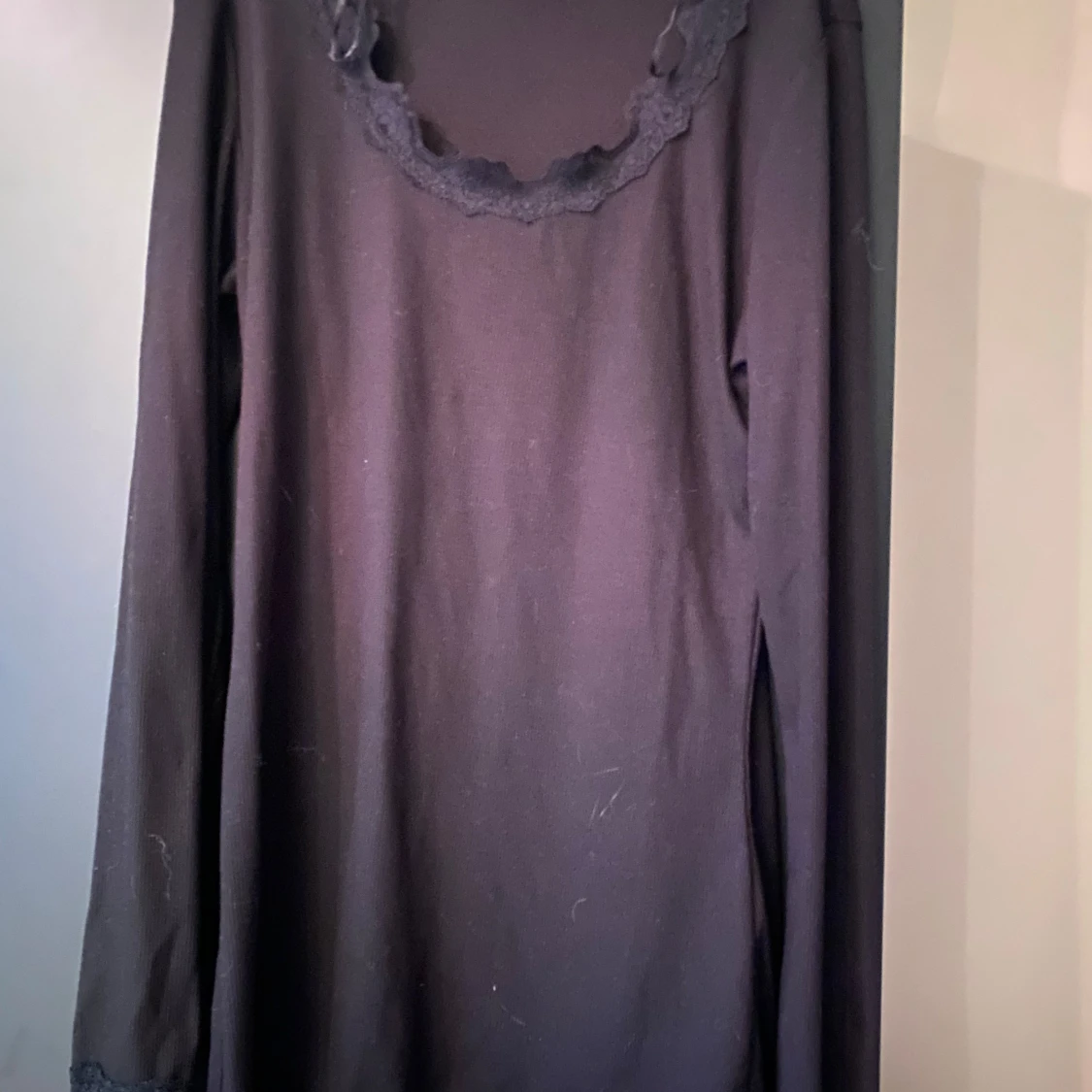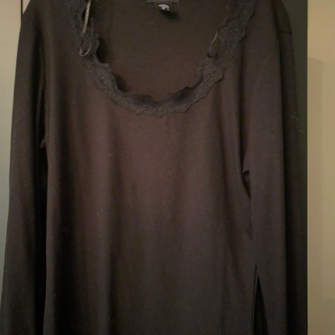 Säljer en svart långärmad topp med fina spetsdetaljer både vid halsringningen och vid ärmsluten. Perfekt för dig som gillar en enkel men ändå lite extra look. Mjuk och skön att ha på sig.