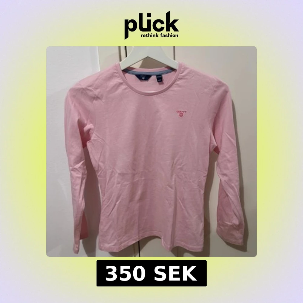 Säljer en rosa långärmad tröja från GANT. Tröjan har en rund halsringning och ett diskret GANT-logotyp broderat på bröstet. Den är inte använd så mycket.