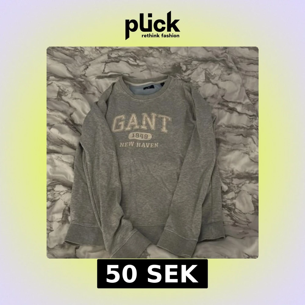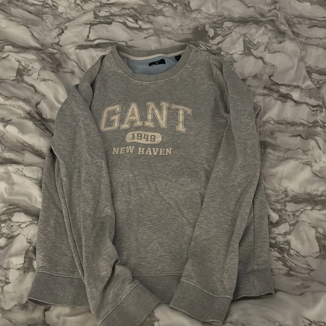Snygg grå sweatshirt från GANT med stort tryck på bröstet där det står 'GANT 1949 NEW HAVEN'. Tröjan har rund hals, långa ärmar och ribbade muddar vid ärmslut och nederkant. Perfekt för dig som gillar klassisk och sportig stil.