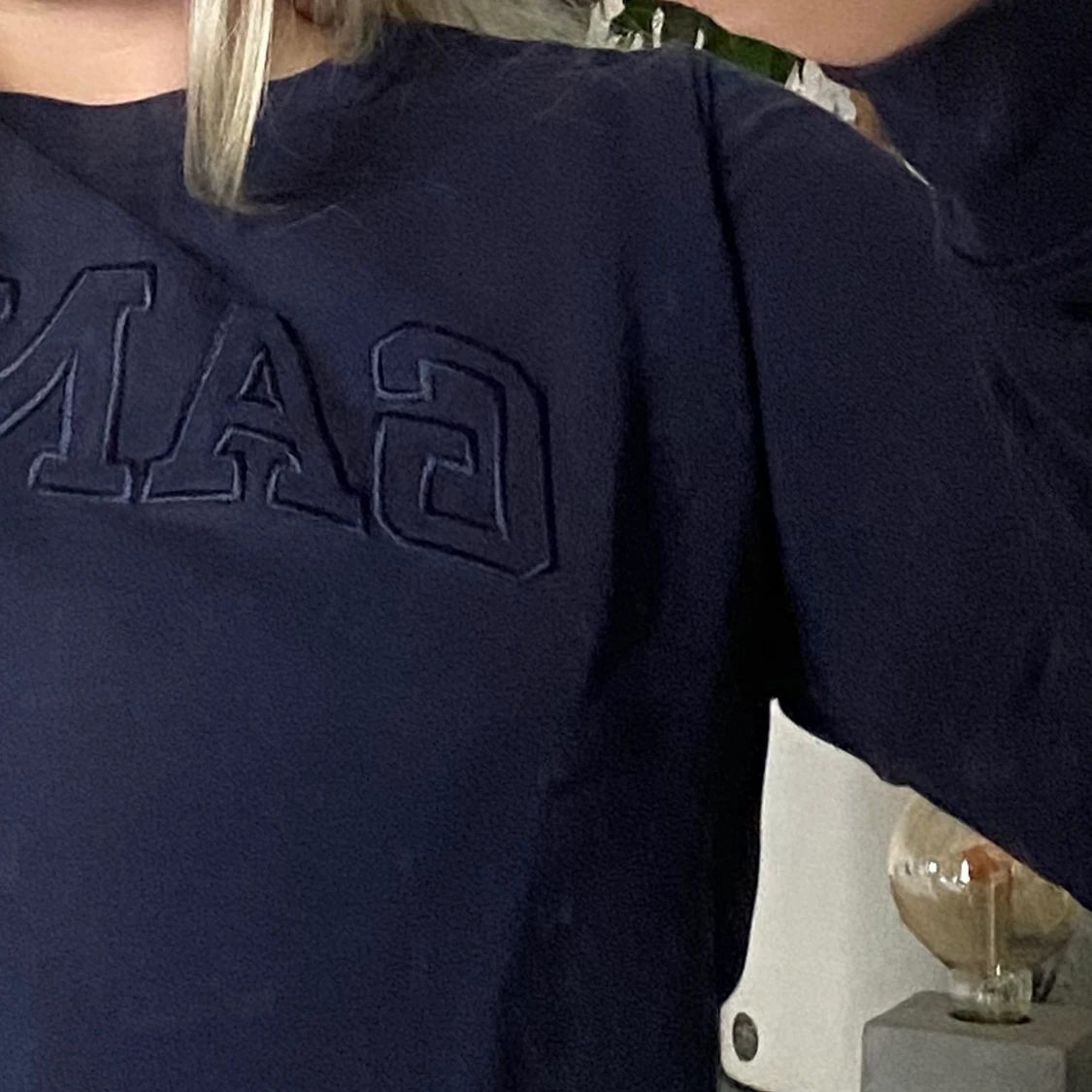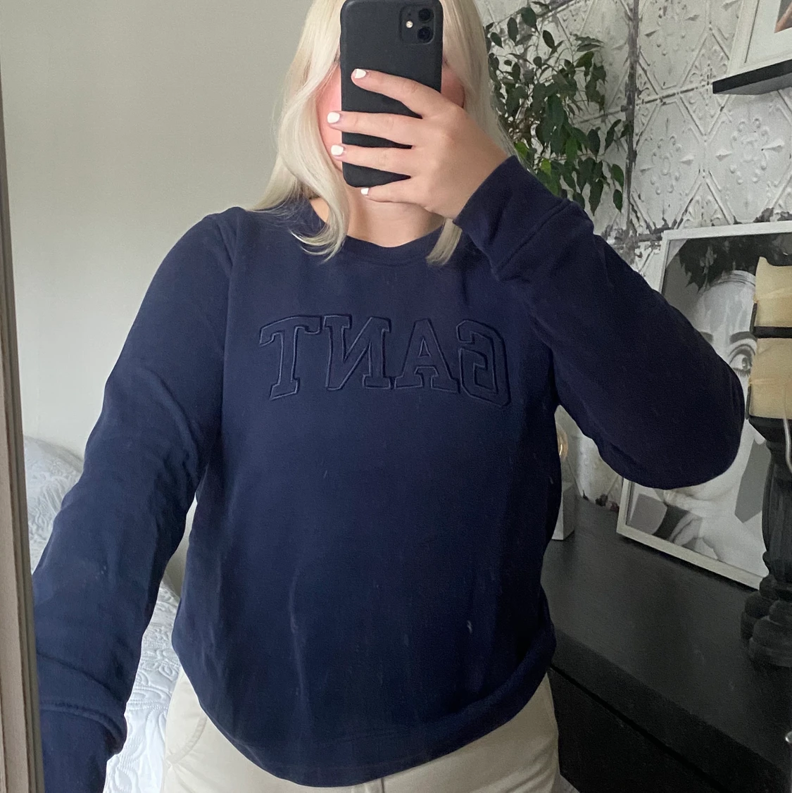 Superfin marinblå tröja i som är relativt tunn. Den är använd men fortfarande i jättefint skick! Den är sann till storleken :)