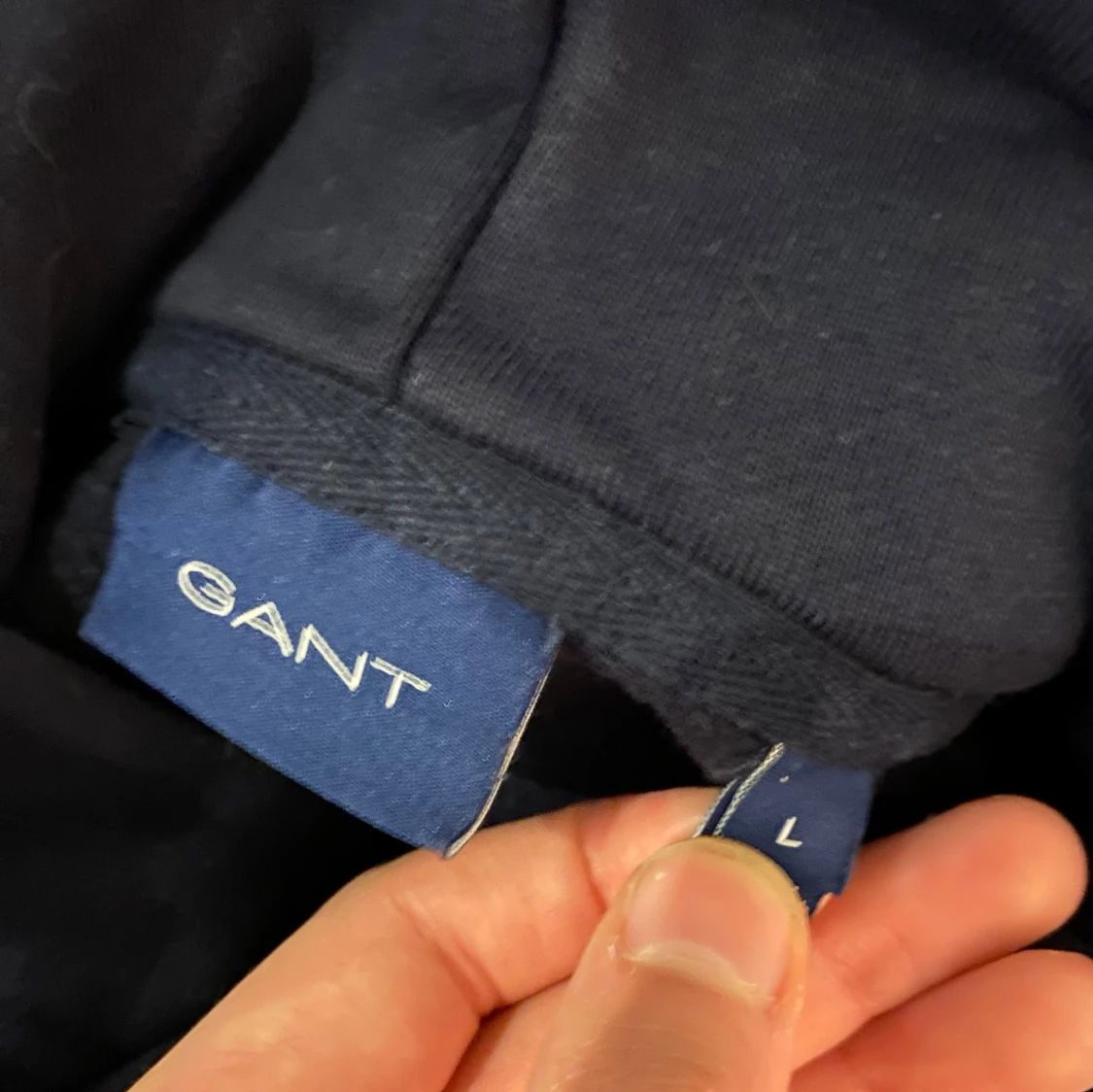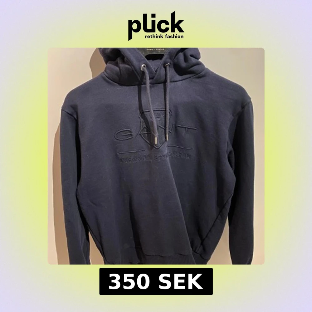 Säljer en snygg mörkblå hoodie från GANT. Tröjan har en klassisk design med justerbar huva och ribbade muddar vid ärmslut och nederkant. Perfekt för en avslappnad stil.