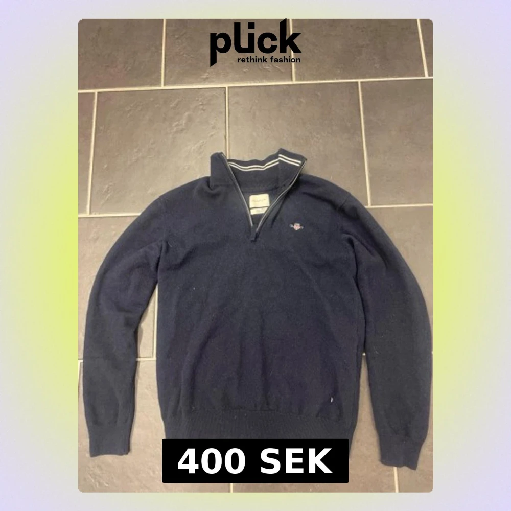 Snygg mörkblå tröja från GANT i superfin lammull, med halv dragkedja och ribbad krage med vita ränder. Klassisk broderad GANT-logga på bröstet. Perfekt för dig som gillar stilrena och bekväma plagg med premiumkänsla.