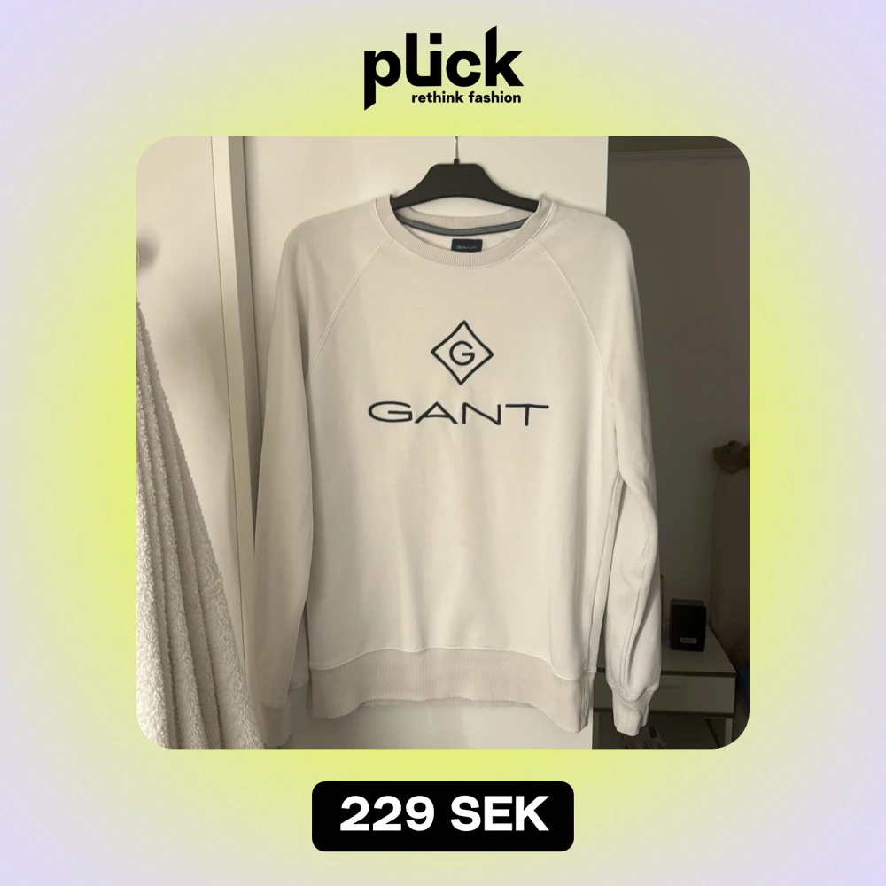 Säljer en stilren vit sweatshirt från GANT, har använt den 3 - 5 gånger och väljer nu att sälja den. Den är i mycket bra skick.