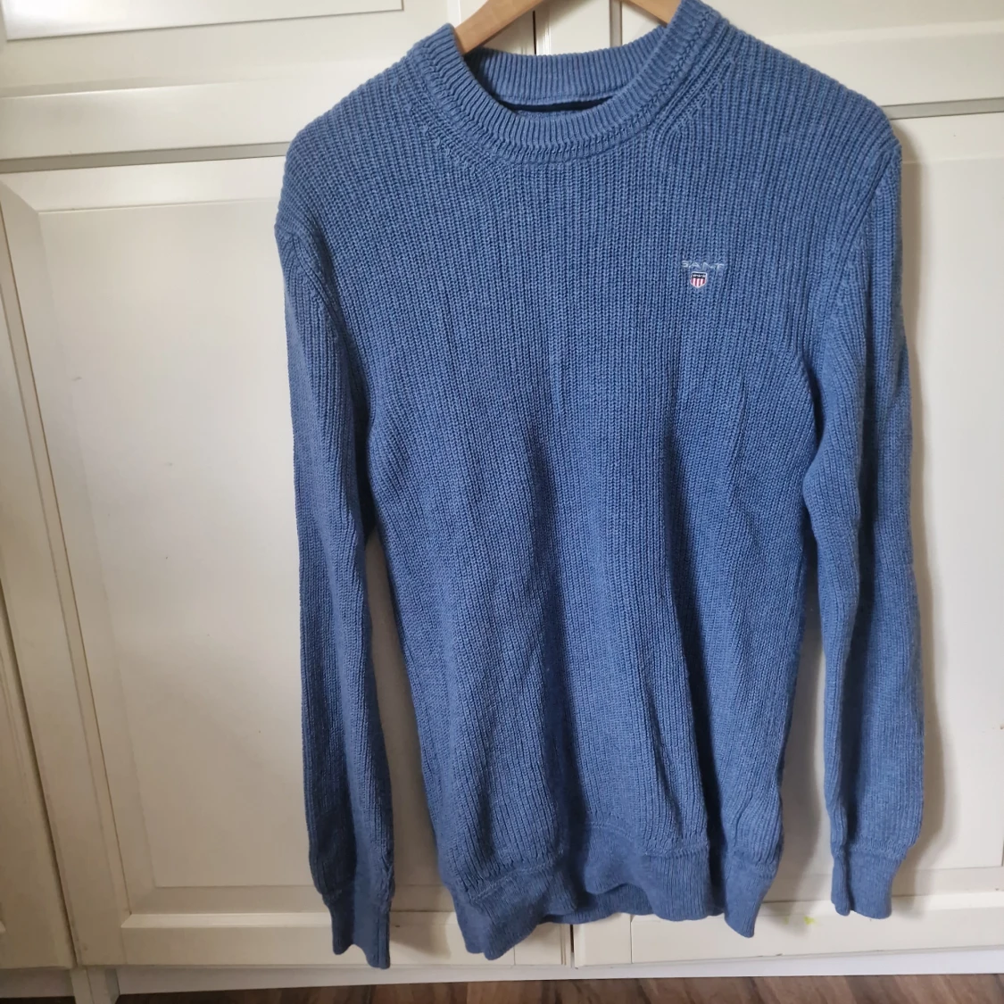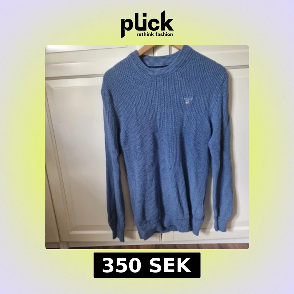 Säljer nu en blå stickad tröja från Gant i storlek S. Tröjan är gjort av 70% bomull och 30% ull. Tröjan är använd 2 gånger 10/10 skick! Skriv gärna i fall ni har frågor!