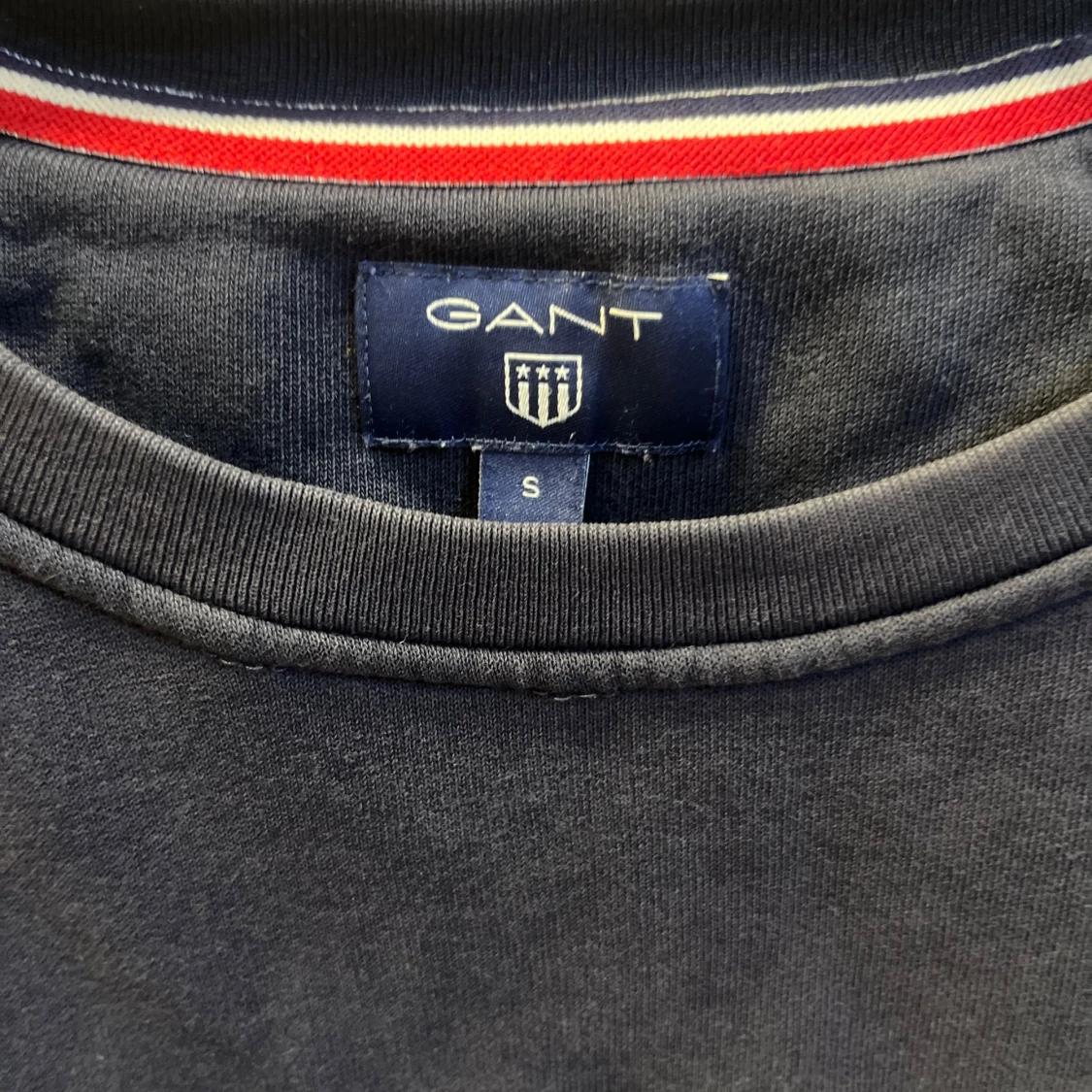 Snygg mörkblå sweatshirt från GANT med broderad logga och sköld på bröstet. Tröjan har rund halsringning, långa ärmar och klassisk passform. Perfekt för en chill och stilren look. Materialet är mjuk bomull som känns skönt mot huden.