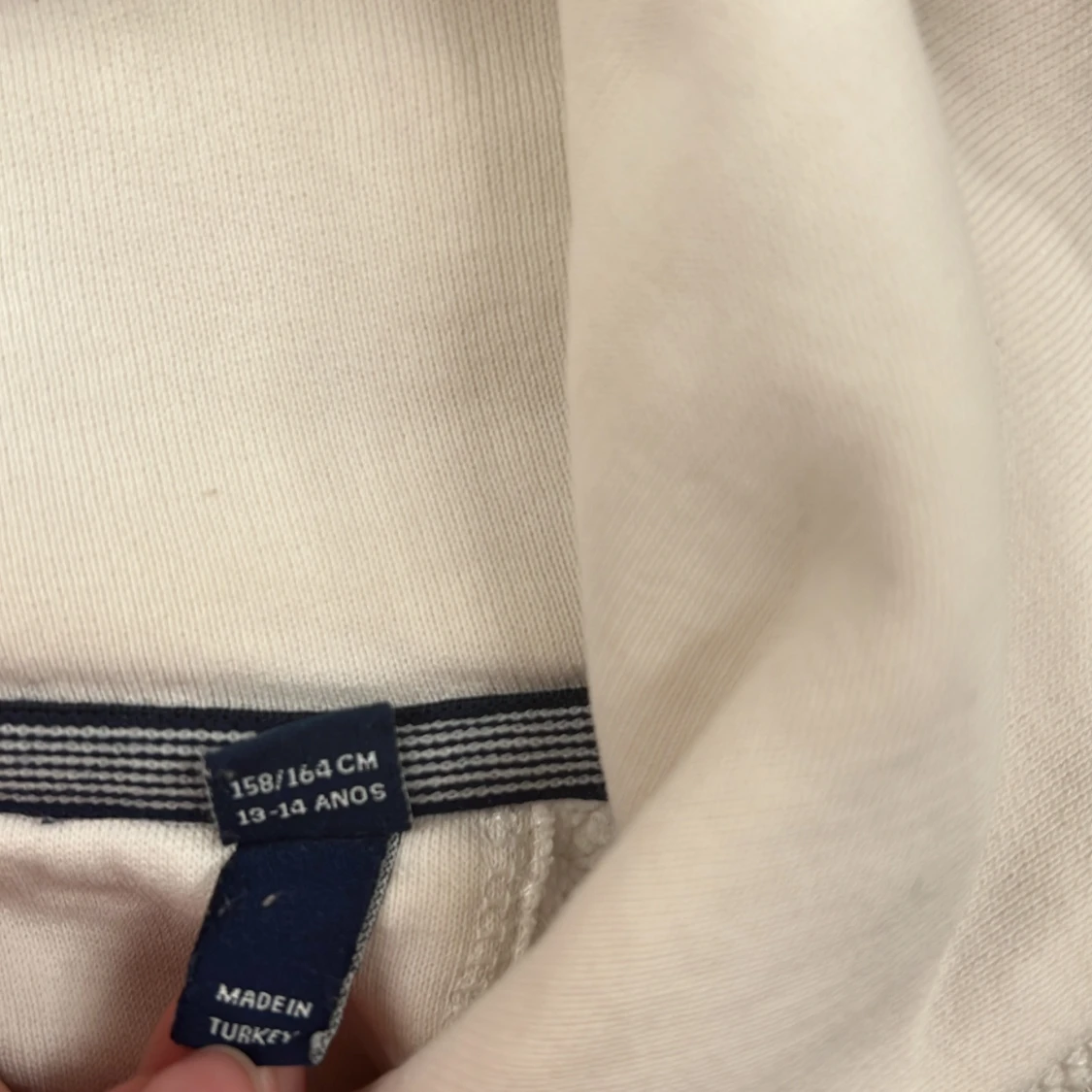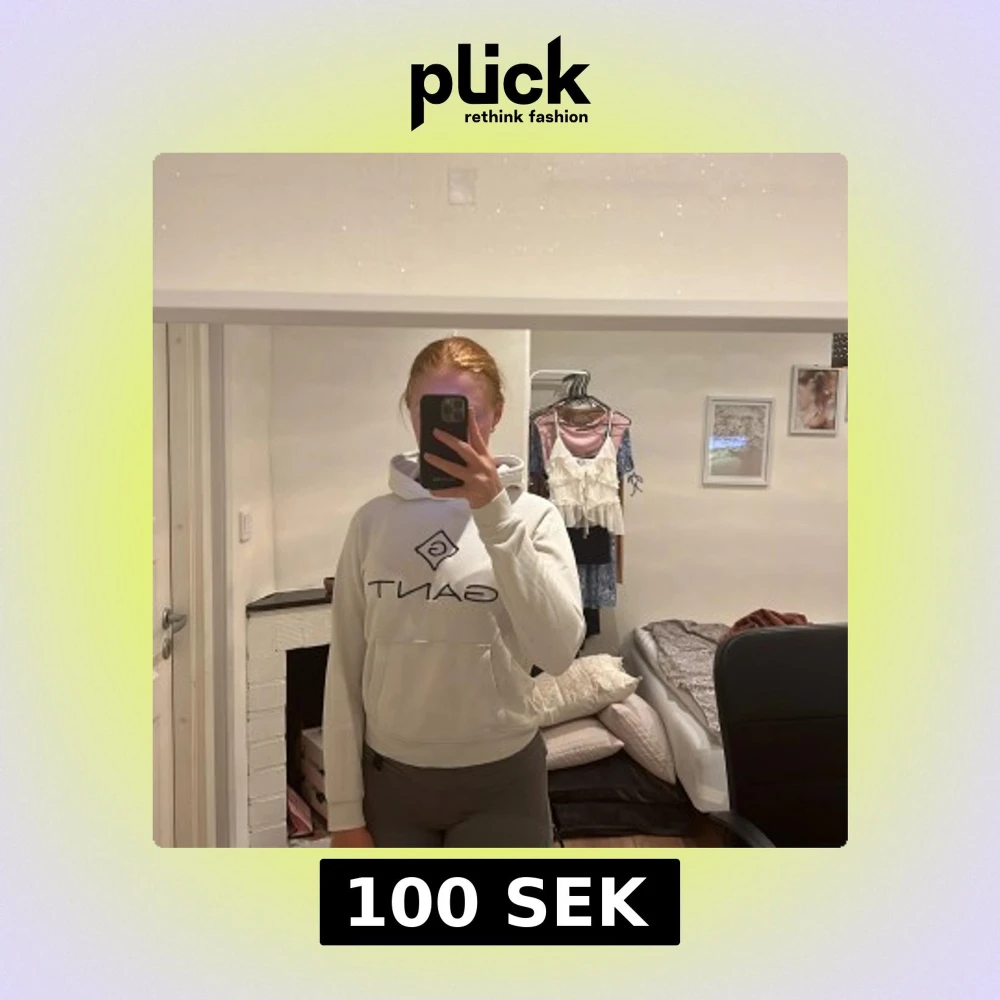 Vit hoodie från GANT med mörkblå broderad logga på bröstet. Ficka framtill och huva. Mjuk bomullskänsla och normal passform. En liten fläck ovanför loggan men syns knappt i dagsljus. Lite foundation på insidan av huvan men det syns inte när man har den på sig. Ge prisförslag!