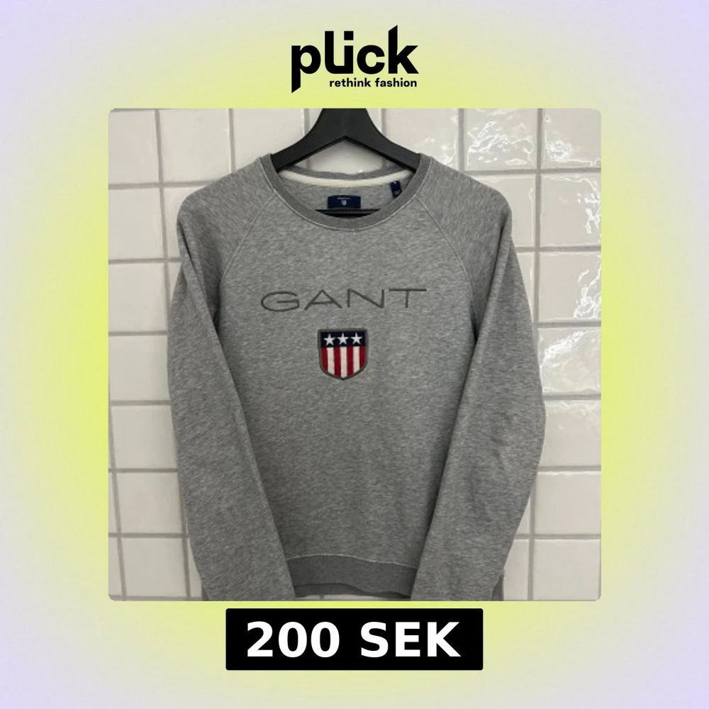 Ljusgrå GANT tröja, strl. M (160/84A) Damstorlek, passar både till tjej och kille. Relaxed fit. Rund halsringning Broderad GANT-logotyp på bröstet 87% bomull 13% polyester Köpt på GANT i Stockholm.