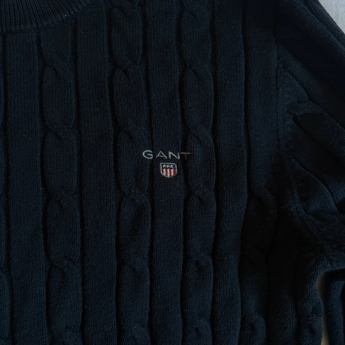 Mörkblå kabelstickad tröja från GANT