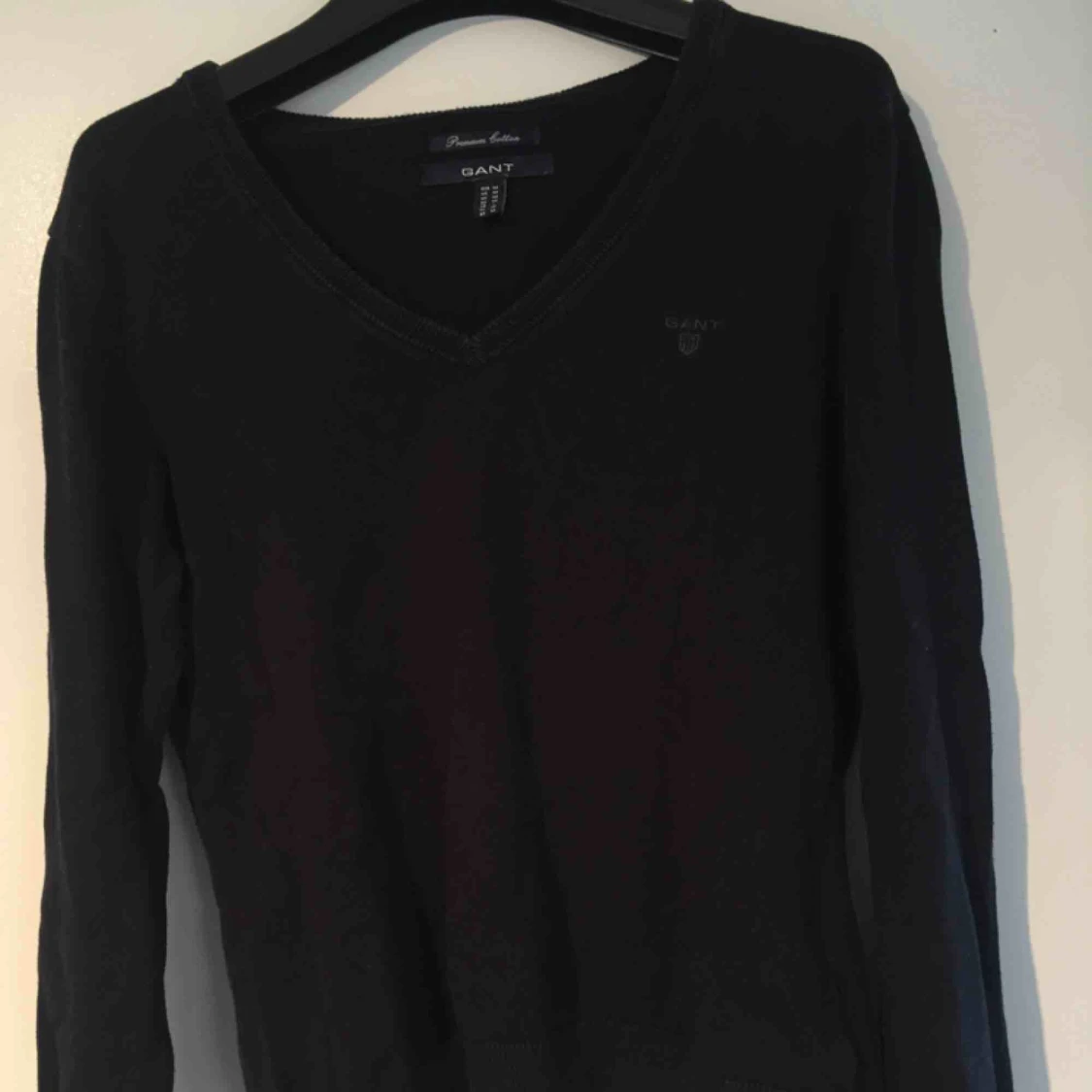 Gant tröja med V-ringad neck. Färg: mörkblå. Använd men har mycket kvar att ge! Supersnygg passform!