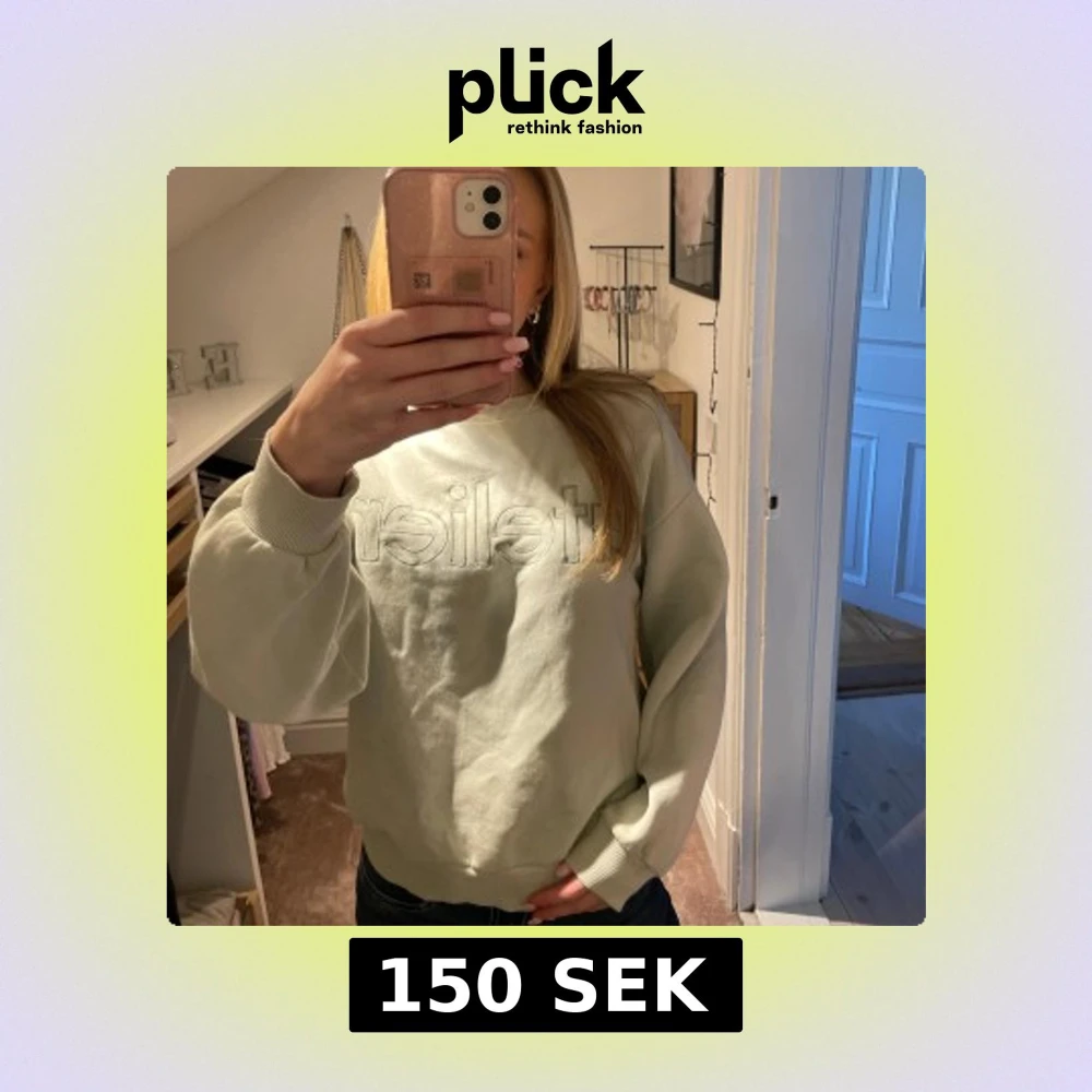 Säljer en turkos sweatshirt från Gina tricot med broderad text på framsidan.