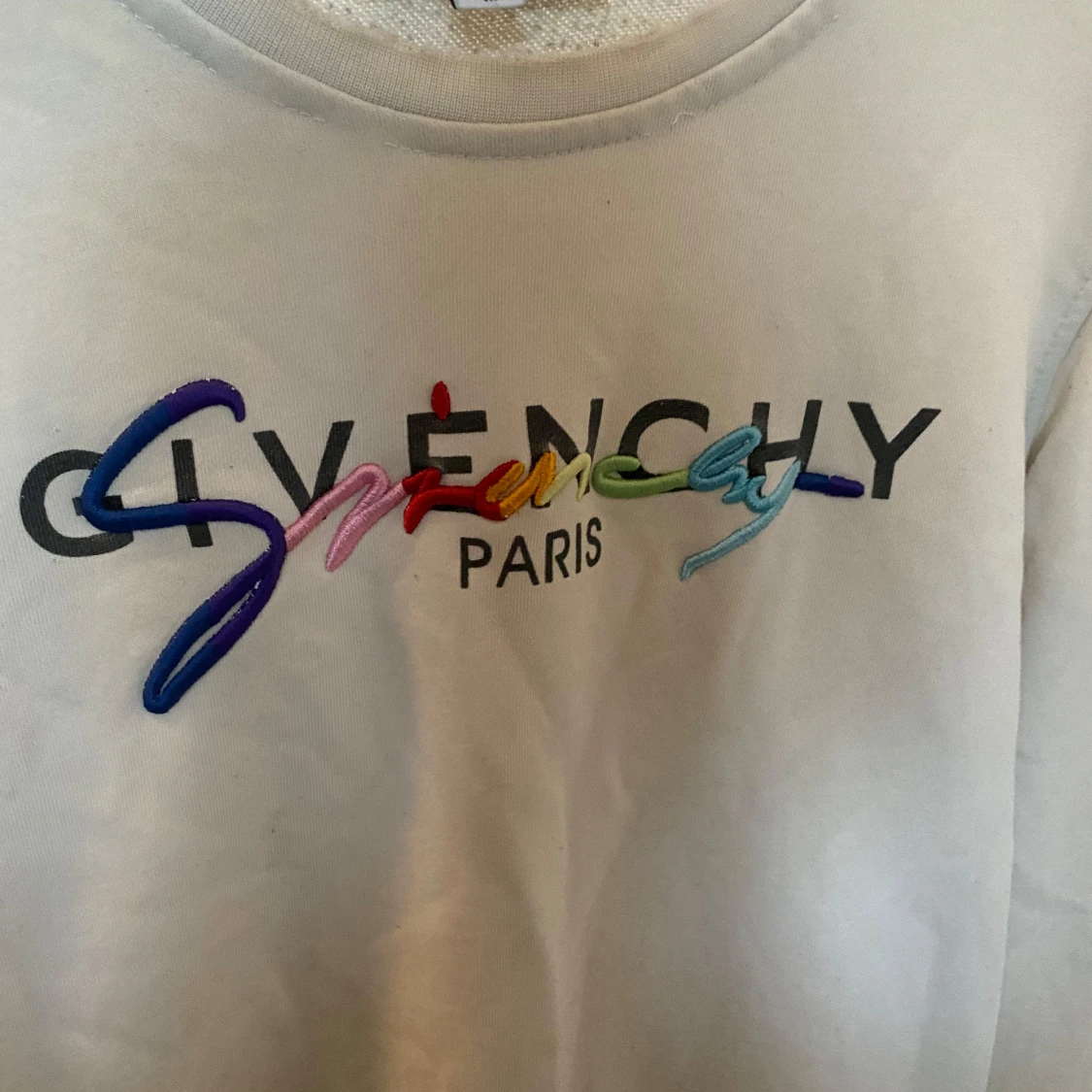 Säljer en vit sweatshirt från Givenchy med färgglatt broderat logotyp på bröstet. Tröjan har rund halsringning och långa ärmar. Perfekt för dig som vill ha en clean men ändå färgstark look. Passar till allt och är superbekväm. Ny pris mellan 5-7 tusen men säljer denna billigt för att den är andvänd rätt så mycket och finns täcken på andvändnig