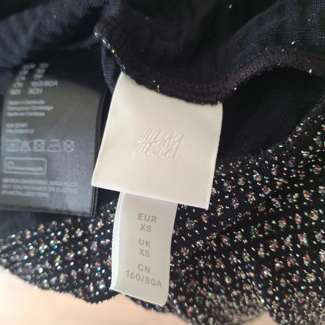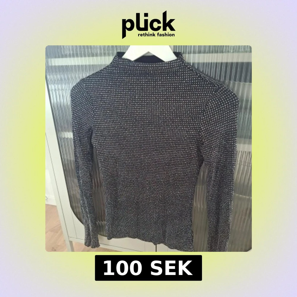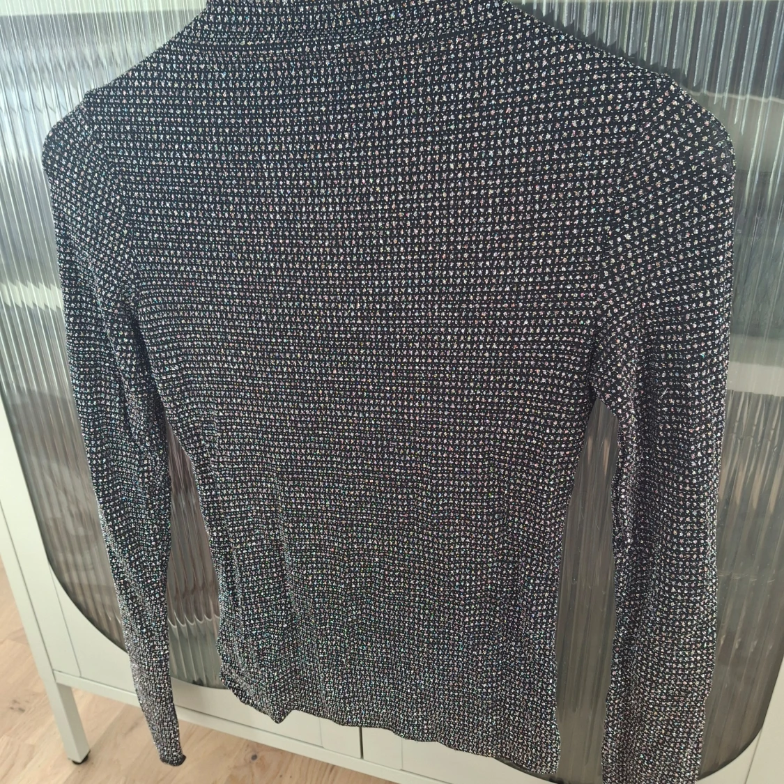 Säljer en svart långärmad topp från H&M med glittrigt mönster i flera färger. Toppen är tight och har en hög hals, perfekt för att sticka ut lite extra. Superstretchigt material som sitter snyggt på kroppen.