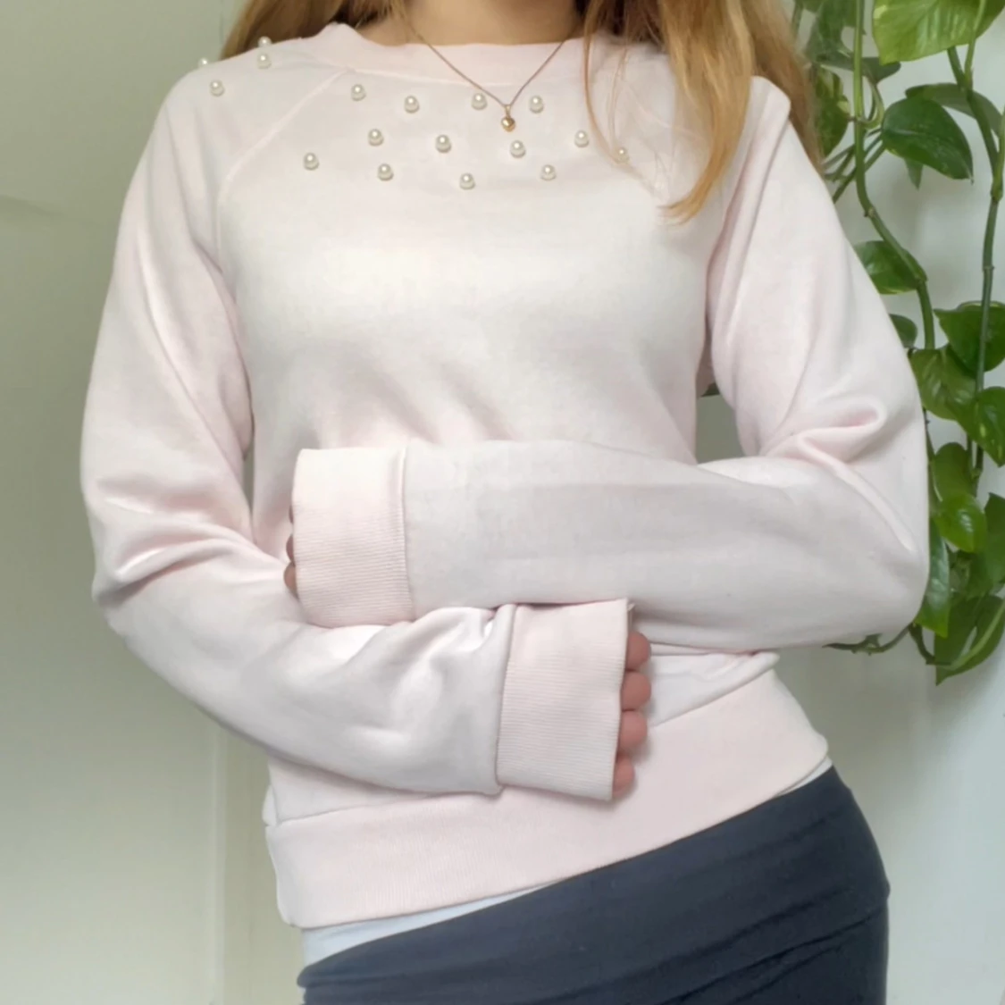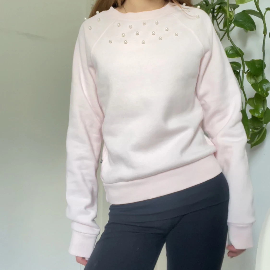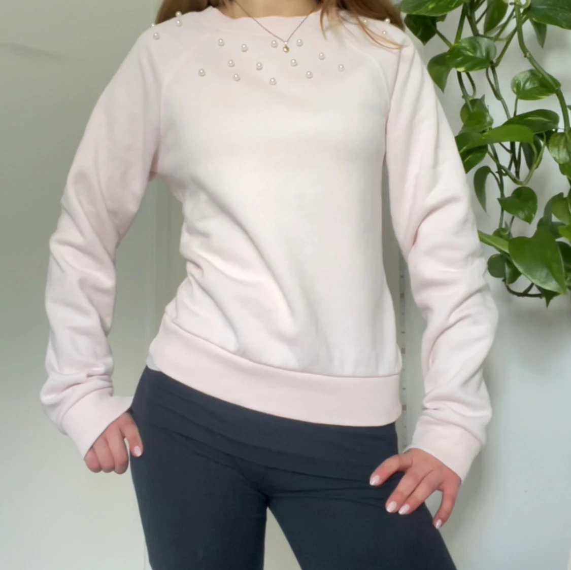 Säljer nu en jättefin ljusrosa mysig tröja med pärlor på. Jätte go och luddig insida, nästan aldrig använd. Storlek XS, köpt på Gothenburg Horse show i februari 2025.