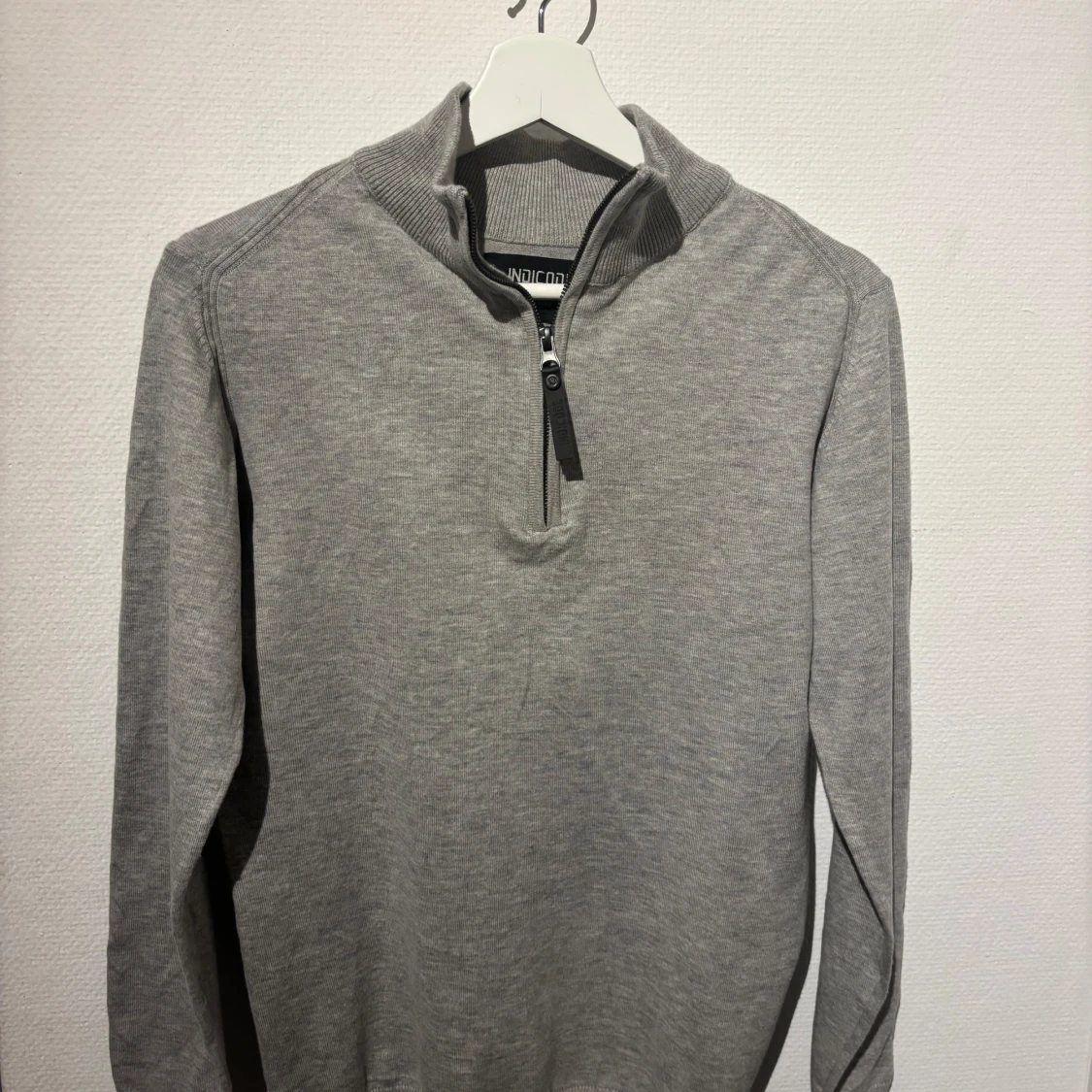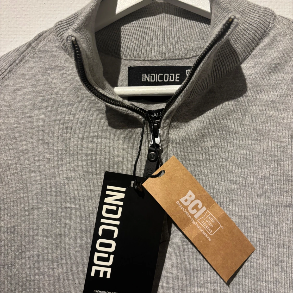 Snygg grå tröja från Indicode med halv dragkedja och ribbad krage. Perfekt för en stilren och bekväm look.