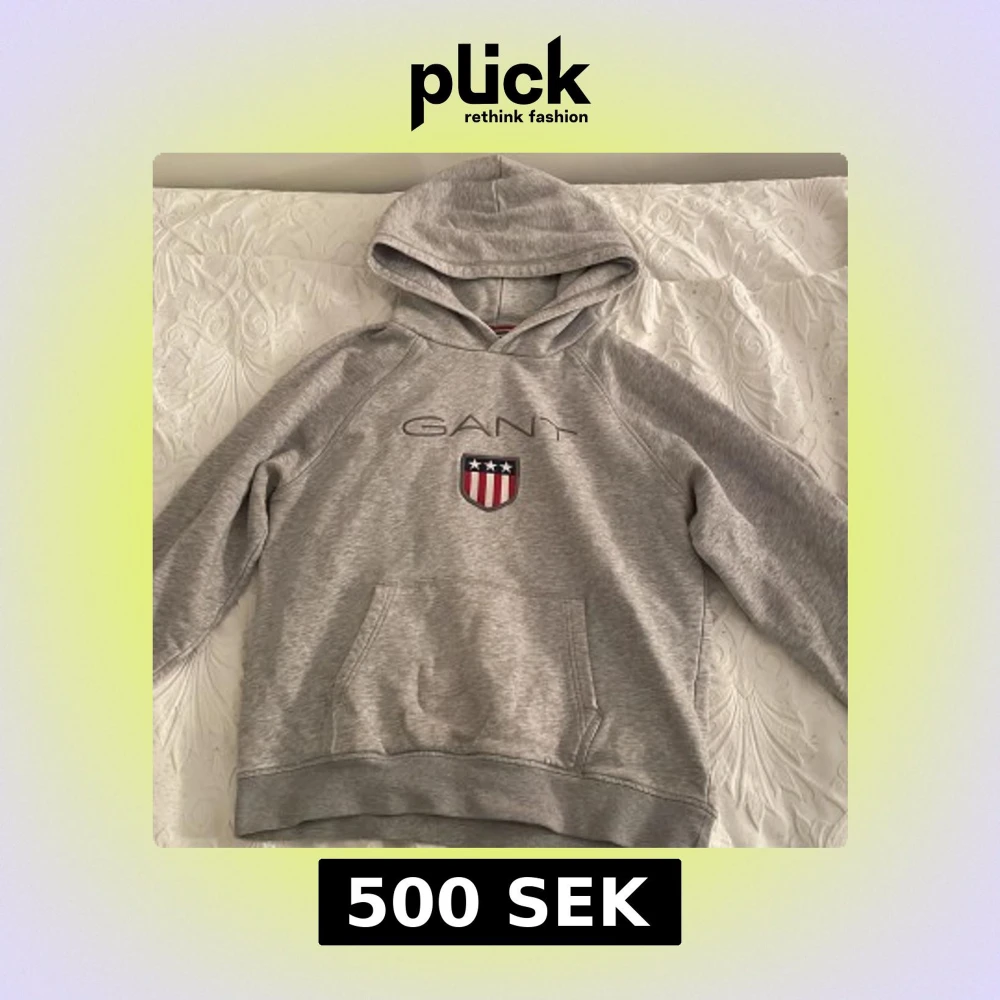 Säljer en grå hoodie från GANT med ett snyggt emblem på bröstet. Tröjan har en stor ficka framtill och en mjuk insida som håller dig varm. Perfekt för kyliga dagar!