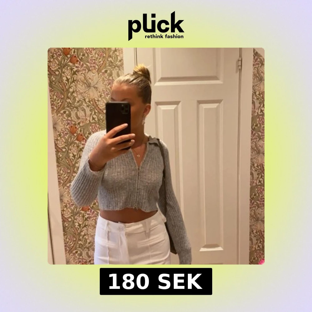 Säljer en snygg grå ribbad kofta från Cider. Den är croppad med dragkedja framtill och har långa ärmar. Ordinarie pris är 268kr