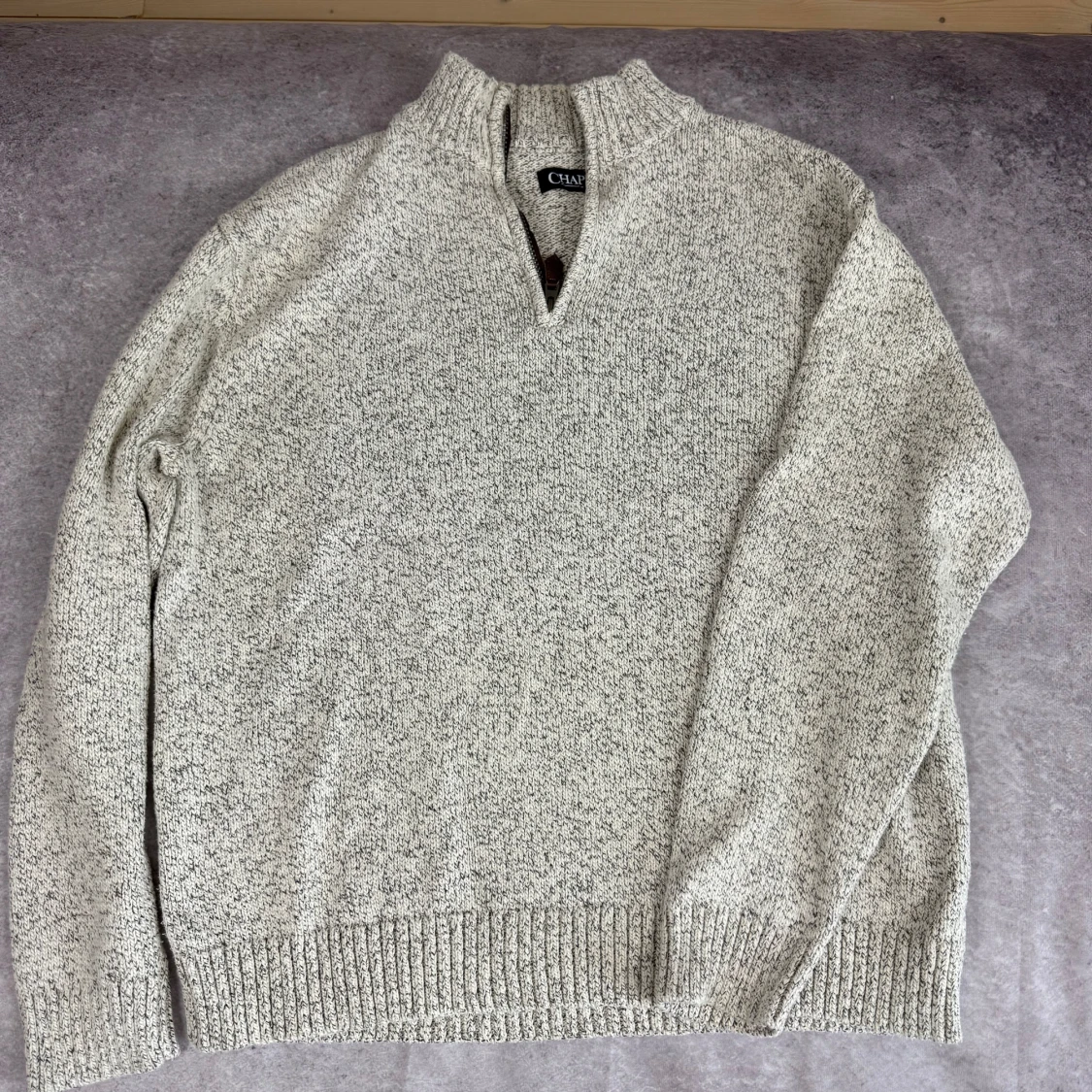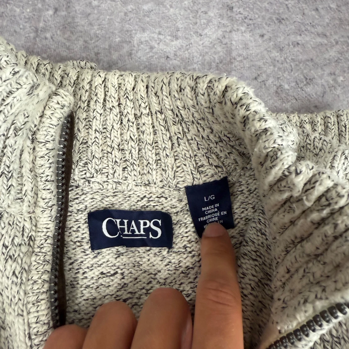 Snygg gråmelerad stickad tröja från Chaps med halv dragkedja och hög krage. Tröjan har långärmad passform och ribbade muddar vid ärmslut och nederkant. Perfekt för lager-på-lager och chill höst- och vinterstil.