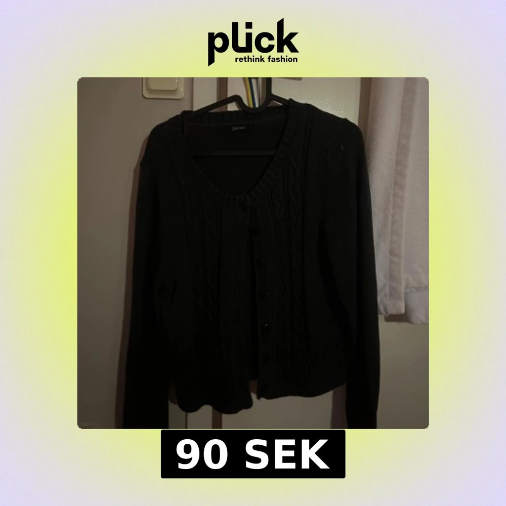 grå stickad kofta från Gianni med snyggt flätmönster framtill och v-ringad hals. Koftan har långa ärmar, ribbade muddar och knäppning med svarta knappar. Perfekt för lager-på-lager och en stilren look.