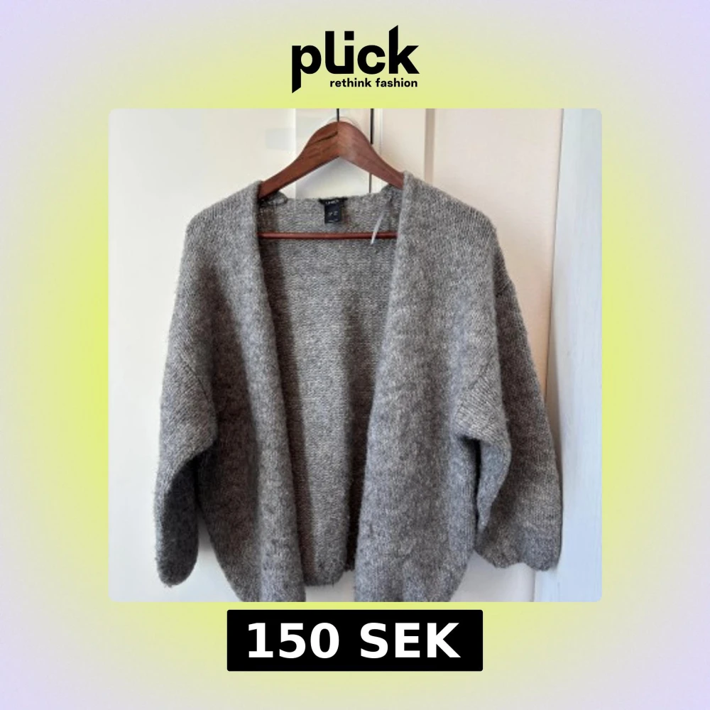 Mysig grå stickad kofta från Lindex med öppen front och lång ärm. Perfekt att slänga på sig över en t-shirt eller blus för extra värme. Enkel och stilren design som passar till det mesta.
