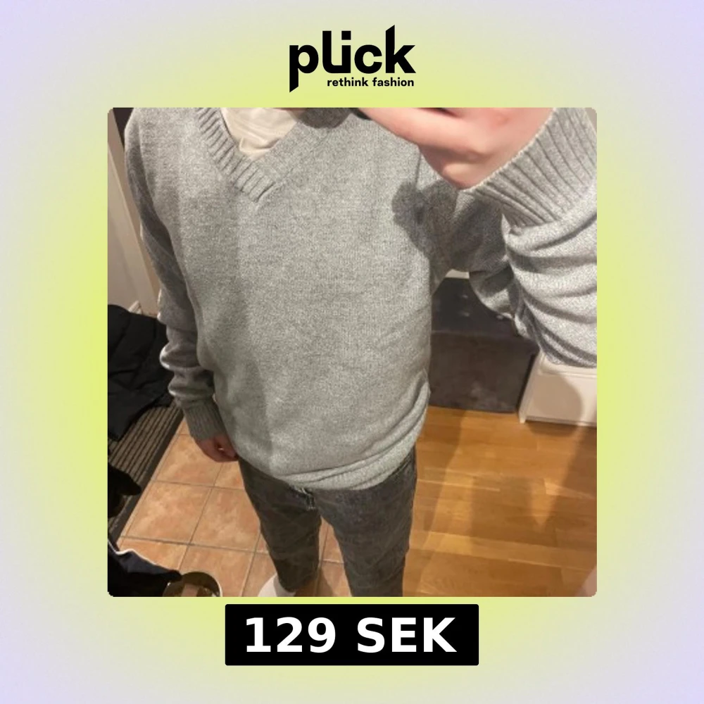 Säljer en stilren grå stickad tröja från Dobber. Tröjan har en v-ringad hals och långa ärmar med ribbade muddar. Perfekt för kyligare dagar och lätt att matcha med olika outfits. Jag på bilden är 160 och den sitter lite stort. Passar xs-s