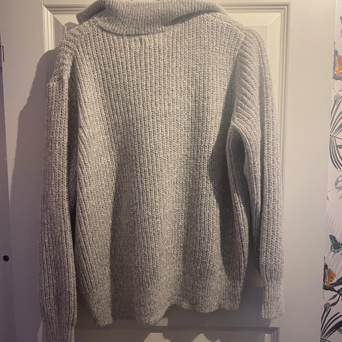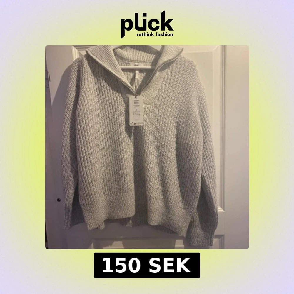 Säljer en mysig grå stickad tröja från Object. Tröjan har en dragkedja vid halsen och långa ärmar. Den är i storlek XL, aldrig använd ny med prislappen på