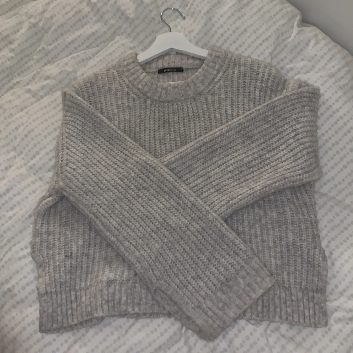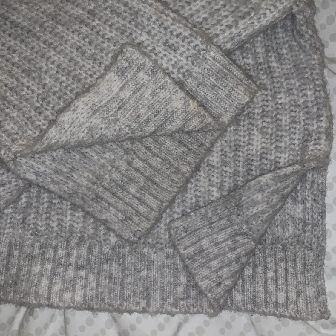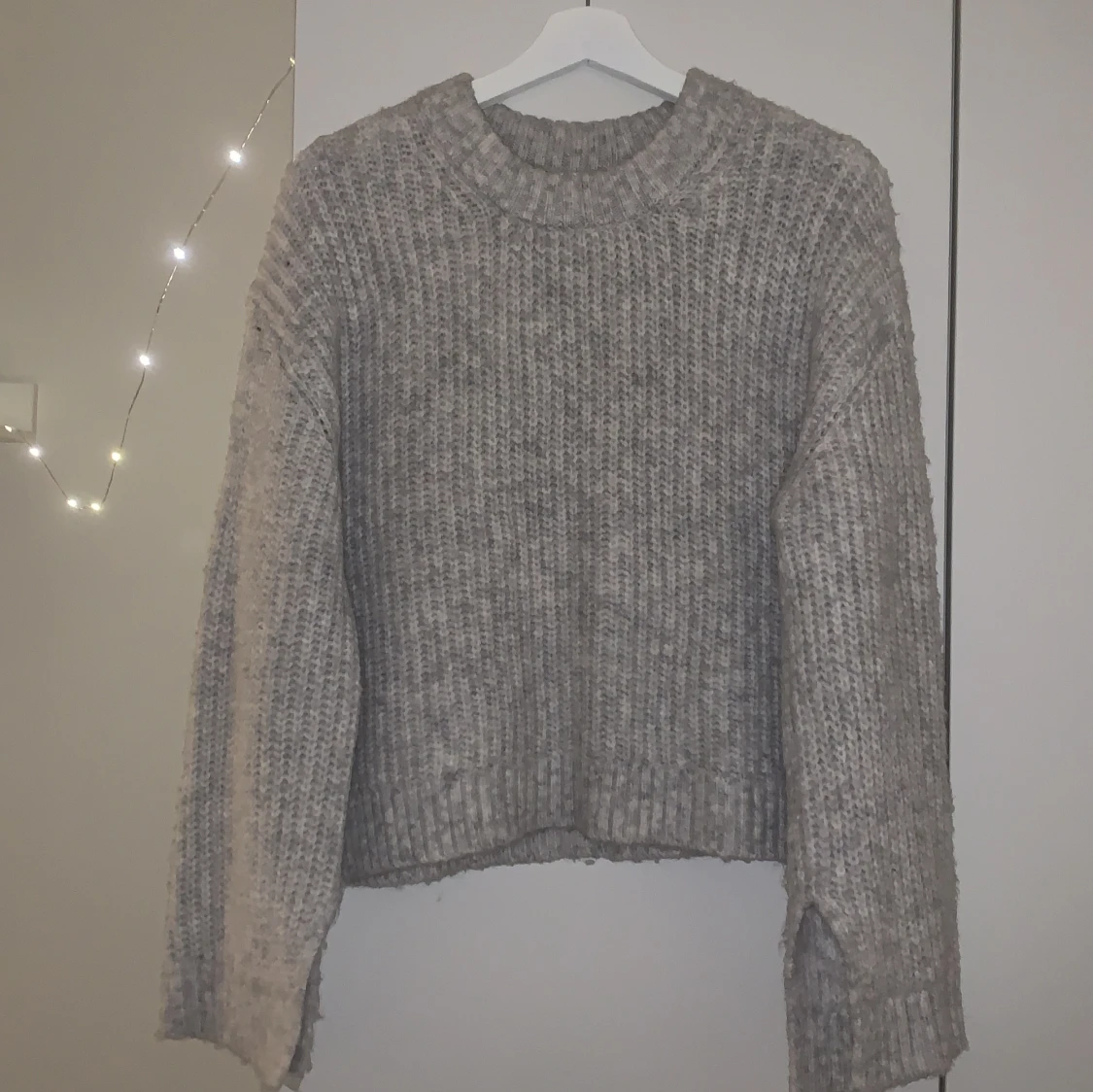 Mysig grå stickad tröja med ribbad struktur. Perfekt för kyliga dagar 😍 Tröjan har långa ärmar och en rund halsringning. Har en lite slitts i ärmarna och på sidorna för en lyxigare känsla ✨ (säljer pga att jag har liknande tröjor redan ❤️)