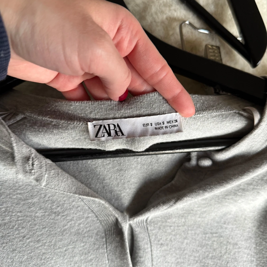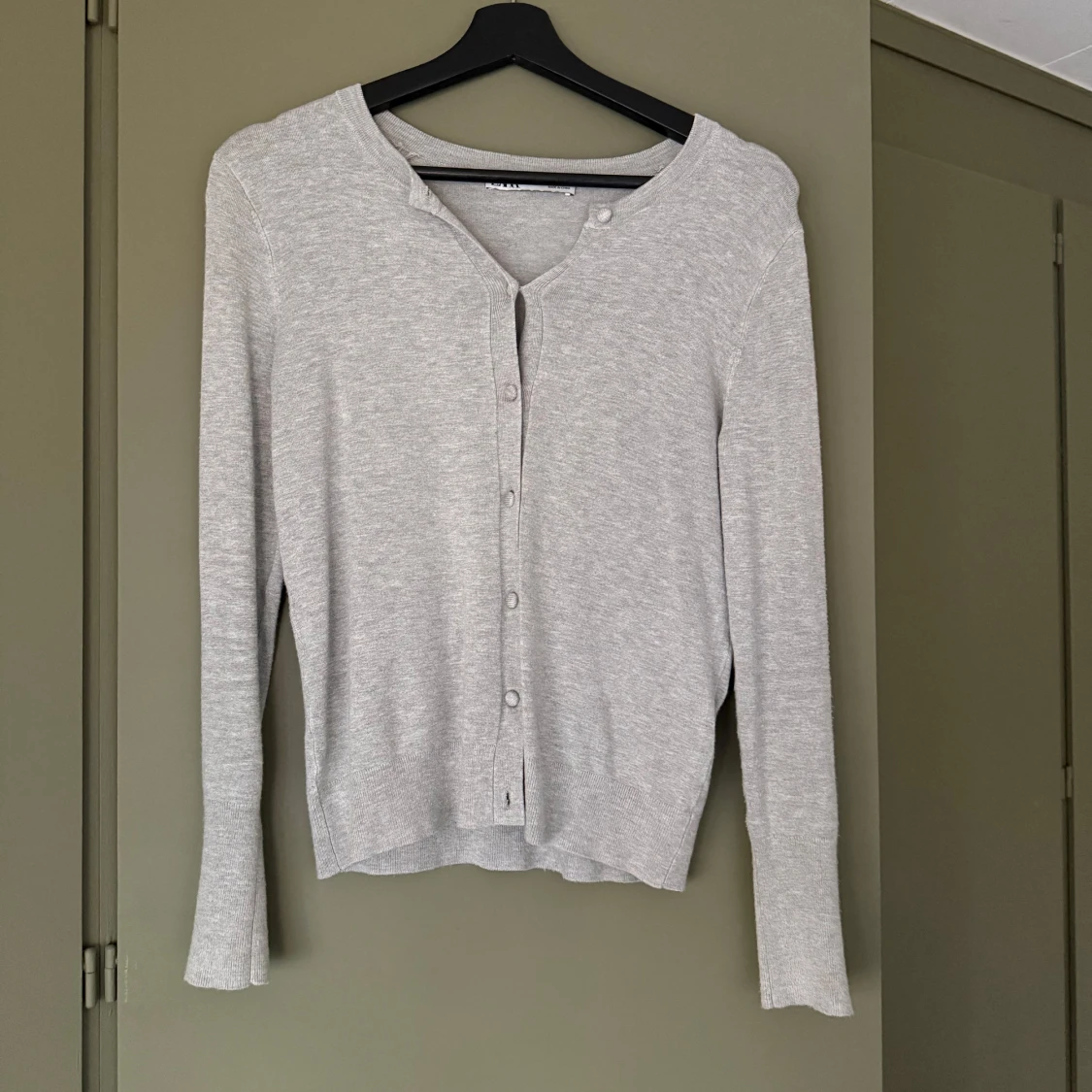 Ljusgrå kofta från Zara i mjuk bomullsblandning. Tajt passform.